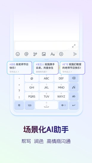 AI 键盘更智能更好用 讯飞输入法,融合讯飞星火大模型,行业首创【AI 键】、一键开启个性化AI功能,输入更懂你。语音输入高效准确,拼音、手写流畅自如,输入更快更好用。更有键盘皮肤、表情、聊天气泡、头像、壁纸,海量装扮有趣有颜 特色功能 【AI语音输入】1 分钟 400 字高效准确,支持离线语音、无网弱网依然准确识别,支持202种方言、30多种外语随心说,输入更快更好用 【键盘AI键】行业首创AI 键,活力视界布局下匹配场景、风格,一键AI 帮写、润色、链接智能服务,输入更懂你 【键盘装扮】海量皮肤、字体随心选,装扮你的专属键盘,输入有趣更有颜 讯飞输入法【有AI键的输入法】,为你量身打造的【专属输入法】,因为懂你所以好用 ===期待你的声音=== 微信官方公众号:讯飞输入法 微博官方账号:@讯飞输入法 或者打开讯飞输入法APP,点击[我的]-[设置]-[意见反馈] 每一条消息我们都会认真阅读,真诚期待您的反馈哦!
