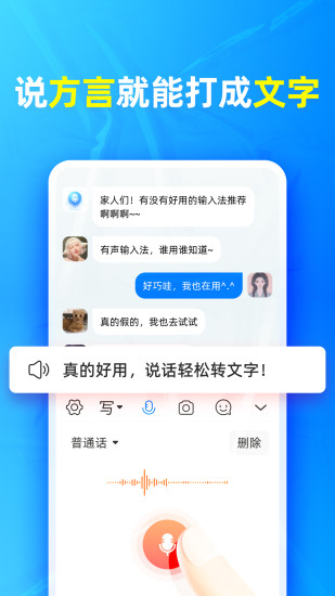 【推荐理由】精准识别26种方言和少数民族语言转换成文字,再用普通话自动朗读一遍帮助您校验输入结果,点一下收到的文字信息也能自动朗读。真正能够帮助不会打字、不识字的朋友也能轻松使用智能手机! ======特色功能====== 【方言输入】支持各种方言精准识别转文字,手机打字无障碍。 【语音朗读】每打一个字或者一句话,都有普通话朗读一遍 【语音点读】收到的文字信息,点哪里读哪里 【自动配图】输入文字智能生成图片,独一无二的专属表情包,聊天更欢乐。 【输入模式】默认手写输入,智能手写识别;9键数字/26键英文则主要用于方便快捷完成输入手机号码和验证码的场景。 【超大字体】更符合中老年人视觉习惯的字体大小,手机打字更准确。 【智能联想】超大中文词库,写了上句自动联想下句,打字超快。 【振动音效】每写一笔都有声音和振动的听觉和触觉反馈 郑重声明:手写输入法不会收集任何用户密码、信用卡等敏感信息,请放心使用!