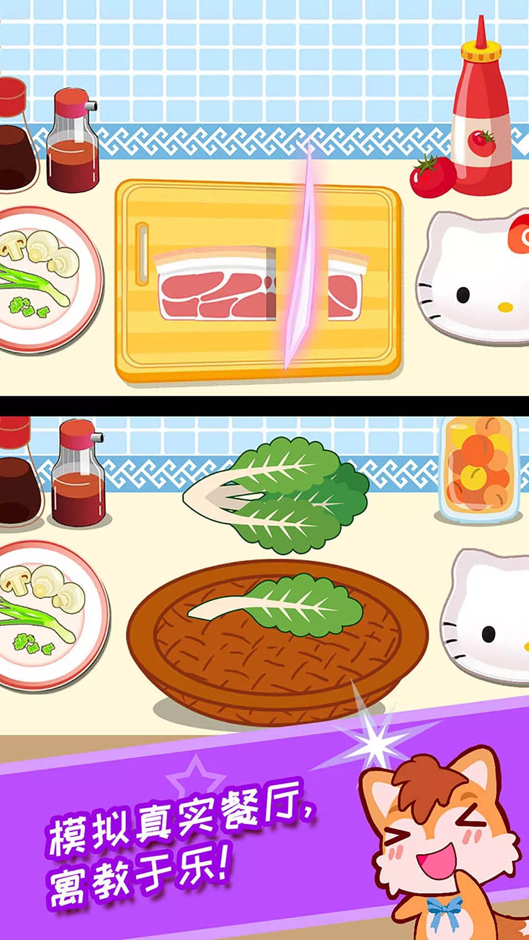 神秘的【宝宝机器人餐厅】来啦!快看看这次有美味的菜式吧! 香喷喷的西红柿炒鸡蛋;肥而不腻的土豆烧肉~ 还有隐藏的蛋糕和披萨等着你哟~ 想知道这些美味是怎么做的吗,快来大展身手吧! ——产品内容—— 【美味爆棚】宫爆鸡丁、白菜豆腐汤、茄角之恋、蚂蚁上树....荤素搭配,有菜有汤,汇聚各地美食,让你大饱口福! 【食材丰盛】牛肉、香菇、鸡蛋....绿色有机食材,综合搭配,吃出健康好身体! 【厨具齐全】炒锅、搅拌机、烤箱...满足你对厨房的所有想象! 【调料丰富】酱油、寂静...丰富的调料,刺激你的味蕾,锁住你的味觉! 【过程享受】招待客人、选菜、食材加工、烹饪、调味,制作心中完美料理! 【奖励金币】烹饪美食,经营餐厅,获得丰厚报酬,学习更多菜式!