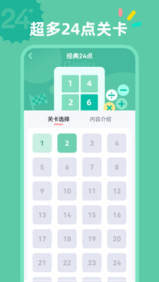 1.24点口算是一款益智软件,既有趣味的24点,形式多样的口算玩法,还有烧脑的数字逻辑推理,提升数字的敏感度和数学的趣味性。 2.三大模块,21项趣味玩法,提供多方位趣味数字训练 【24点】包含9种24点玩法,其中经典24点是最原始的24点玩法,另外还有竞速24点、简单24点、限算24点、24点分配率、24点难题、24点选牌、24点消除、24点亲子PK这8种拓展玩法,各有倾向性,充分展示24点的趣味性和复杂性; 【口算】包含口算练习在内,可以根据自己想要的数字范围和运算法则进行选择练习,精准训练自己的口算能力;还有数字之和、平衡等式、拆数达人、算术达人、三阶幻方这5种趣味数字模式,提供更加复杂的基础计算; 【数字逻辑】包含数字华容道、数方、数织、纵横算式、九宫数独、找规律这6种逻辑推理玩法,锻炼逻辑思维的同时也能增加数字反应的敏感性; 3.打印功能,可以对24点、口算练习的题目进行打印,方便喜欢在纸面上玩24点、练习口算的人群; 4.适合人群:不分年龄,男女老少,只要是喜欢各种数字解谜游戏、需要打发时间、多人聚会、希望提高自己计算能力的人都可以玩。 工作学习之余,可以来这里放松一下,一起比拼计算能力和反应能力,缓解一下压力。