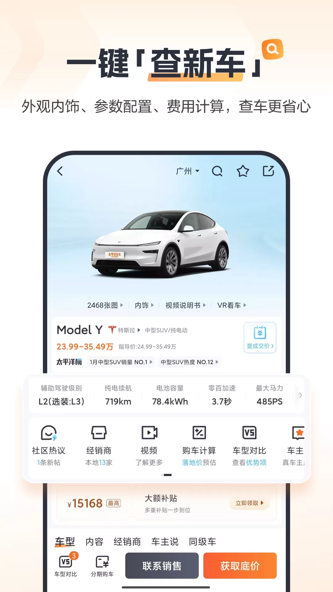 太平洋汽车——千万车主信赖的查车神器,选买新车二手车,海量车型,精准报价! 【看车选车 · 3步省心】 超全车型库:车型对比、购车计算、经销商查询,选车一站搞定! VR看车:VR全景看车,免去跑4S店! 专业评测:资深编辑+KOL+车主真实汽车评测内容,买车有参考! 【买车补贴 · 省出5万】 一键询底价:本地最低成交价马上知晓,底价更透明! 最高抽5万补贴:半价购车抽奖(挂钩股指),真实有效! 补贴车型多:覆盖比亚迪/鸿蒙智行/大众/本田等爆款车型! 【用车有料 · 边用边省】 车友社区:车圈热点、用车体验、车友圈子全都有,帮你找到车主之家! 福利专区:积分兑金豆子/苹果电脑/华为平板等好礼! 【怎么找我们?】 微信公众号:@太平洋汽车 微博:@太平洋汽车网 视频号:@太平洋汽车 抖音:@太平洋汽车 小红书:@太平洋汽车 、 @太平洋汽车App