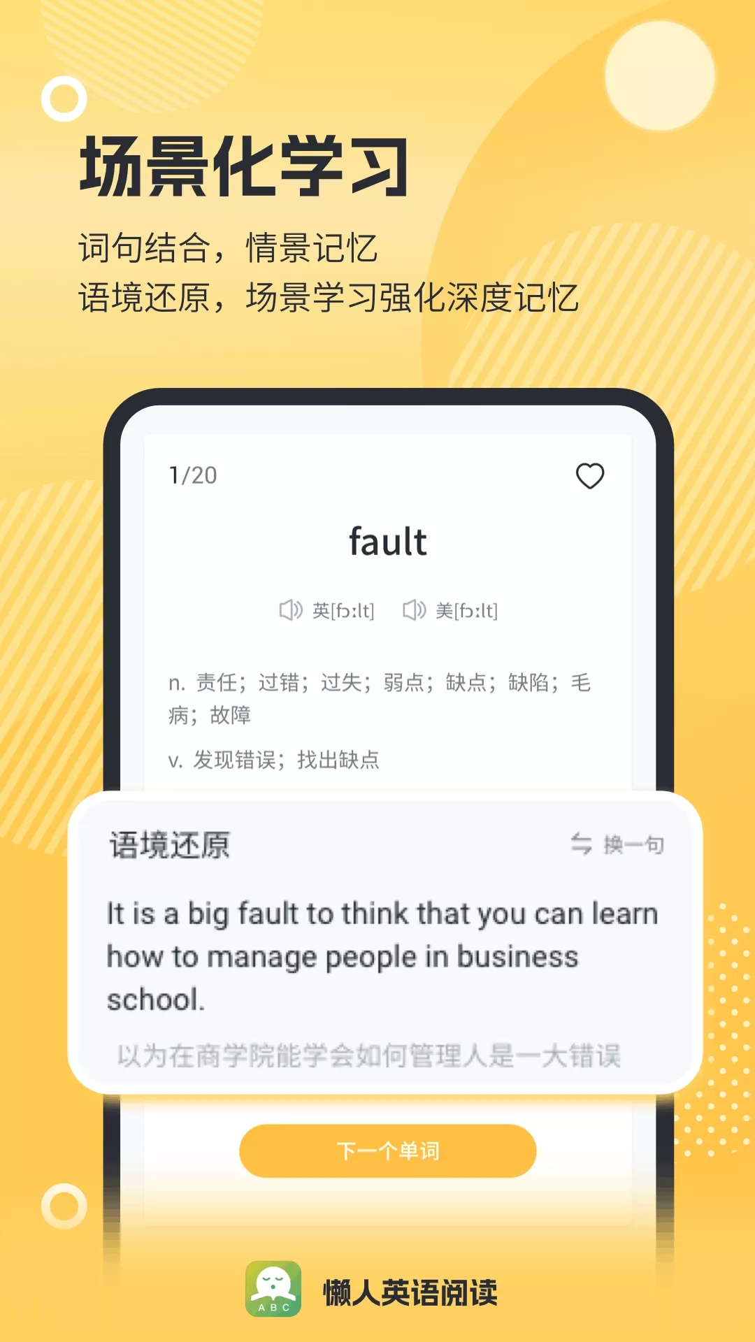 懒人英语阅读是一款专注英语阅读提升的英语学习软件。它每日更新外刊、英语文章免费阅读,精挑细选英语原著。海量的英语读物,双语阅读更简单,简直是英语学习者的天堂! 【精选英语外刊】 每日精选热门外刊,在信息爆炸的时代,精心为你挑选整理有价值的观点、有情怀的事件和有趣味的资讯。China daily、大西洋月刊、经济学人等免费阅读,积累写作素材,学习地道鲜活表达! 【海量书籍】 海量英文经典世界名著、网文等,无痛学英语。《傲慢与偏见》、《局外人》、《小王子》等 【双语阅读】 可中英文对照阅读,适合各阶段学习者无痛阅读英语刊物、英语书籍。当然也可切换全英文阅读,点击单词查询释义。 【学习计划】 可以编辑自己的阅读计划,时时刻刻监督自己,记录自己的学习历程,感受学习的点点滴滴。 【场景化学习】 单词还原语境,在原句中体验单词的含义,联想记忆更高效更牢固。 【重点单词提示】 文章的重点单词(四六级,雅思托福等词库)重点提示,可以按照难度选择所需提示单词,帮助你有重点的学习单词。 我们精心挑选全新热门文章,使你通过双语阅读更好地理解内容,无论是新闻、科技还是文化话题,我们都实时更新。我们的书库包含各种类型的英文原版书籍,无论你喜欢现代还是经典文学,这里都能找到适合你的阅读材料,让你在阅读中自然而然提升英语水平。你可以根据自己的时间和能力定制阅读计划,并通过系统监督自己的学习进度,记录每一小步的成长。我们相信学习单词有效的方法是将其放回原句中去学习,这样不仅能帮助记忆,还能更好地理解单词的用法。 文章中会特别提示重点单词,你可以根据自己的英语水平选择不同难度的单词,专注学习需要的词汇。