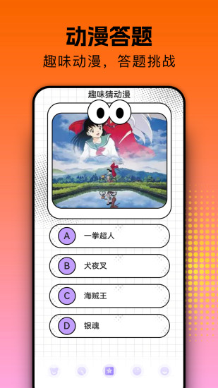 有精选的番剧推荐,通过猜测漫画的情节、人物或场景来挑战用户的漫画知识。涵盖各类热门漫画作品。无论是漫迷还是想要了解漫画的新手,都可以在这款app中享受到有趣的猜图游戏,并提高对漫画的认知水平。快来挑战你的漫画知识,成为猜图大师吧!