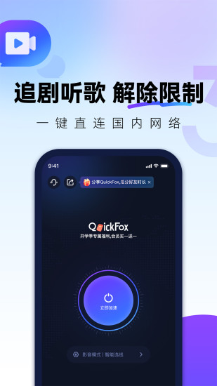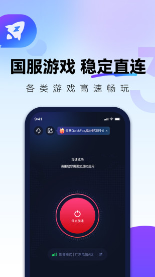 QuickFox-海外回国免费专线加速器推荐,快速访问国内影视音乐新闻资讯游戏直播极速穿梭访问国内,华人留学生连接中国专属加速器 QuickFox回国加速器,海外华人、留学生、海外出差用户群体回国加速领先品牌,解决地域限制,免费高速访问中国网站,海外一键加速回国,解锁国内音视频资源,高速专线稳定低延迟玩国内游戏。 海外华人免费高速访问中国音视频网站,海外加速回国,解锁国内音视频资源。QuickFox回国加速器 可以帮助海外华人在国外自由无限制的访问视频音乐、媒体游戏、资讯信息等中国大陆互联网资源平台。 安全注册保密,没有广告,免费使用,一键连接,简单易用。 我们在全球部署200+专属高速节点,一键穿梭加速回国,帮助全球各地华人用户连接国内互联网娱乐生活,听歌玩游戏访问网站不再卡顿。 海外华人专属应用,一键轻松连接,加速回国,帮助海外华人和留学生连接中国精彩网络娱乐生活。 QuickFox加速器服务器托管在星级机房,专享高速网络带宽,告别延迟卡顿,加速国内各大主流音视频。 QuickFox海外华人回国加速器优势: 1.无广告海外华人加速器 QuickFox不光成为会员后免费,也不会在您使用的时候出现任何广告 2.安全免费注册登陆 您可安全免费注册登陆,可以使用我们的服务,获得会员优惠 3.高效、速度快 QuickFox加速器使用高速服务器,提供高速网络服务 4.安全、稳定 所有数据多层加密,保护用户隐私安全 5.方便、简单 一键连接,方便使用 QuickFox解锁国内音视频网站,国外看国内影视平台、听歌、玩游戏出国留学海外党必备加速器。香港台湾可用,海外华人看电影电视追番。 解锁国内资讯媒体、视频网站等平台,出国留学党必备。海外华人回国看视频追番、玩游戏、玩国内任何一款游戏都可以。 *友情提示:QuickFox为海外回国专用加速器,无法为位于中国大陆地区的用户提供服务。* QuickFox是一款面向海外华人和留学生打造的专业回国加速器(accelerator for Chinese abroad),身在海外,使用QuickFox即可一键加速回国,无差别访问国内游戏、影音、娱乐等网站和应用。 QuickFox海外加速器核心优势: 覆盖全球多个节点,支持多种应用场景——玩游戏,看视频直播,听音乐,商务办公,一键加速回国,体验无差别网络。
