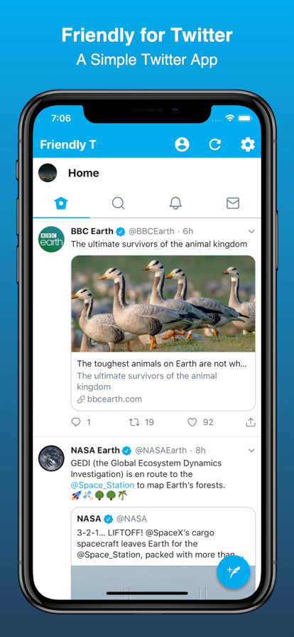 TheWorld is Twitter Client which have many features include UserStream. TheWorld have unique user interface, and many kinds of features. TheWorld must give you a New Twitter Experience which you never experienced. Explain some major points. -------------------------------- 1 Many kinds of feaures -------------------------------- TheWorld born by dissatisfaction, and become better and better by dissatisfuction. So, TheWorld is usefull. For example, UserStream which can refresh timeline in real time, Tabs, Multi Accounts. We cannot explain all of features. -------------------------------- 2 Animations -------------------------------- There are many animations in all over TheWorld. Aniamtions are going to let you feel good. -------------------------------- 3 Easy to use -------------------------------- In TheWorld of TopView, Swipe left or right to access the next tab as you turn a terrestrial globe. And TheWorld has few buttons that are in the upper part of view, because these are reason which user cannot use easy to control. -------------------------------- 4 Extra features -------------------------------- TheWorld is not serious Twitter client, so TheWorld have some strange features. How many features you can find? Support @TheWorld_JP or @U_Akihir0
