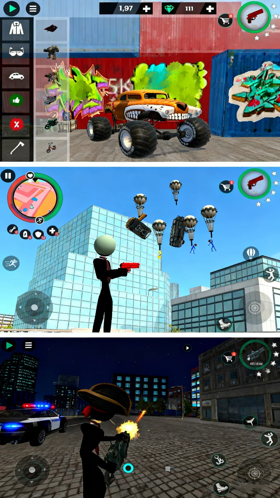 这是一款火柴人系列3D动作射击游戏,游戏中的战斗方式主要以射击的方式为主,非常考验玩家的操作能力,玩家将操作火柴人进行紧密的射击的战斗,跳跃各大高楼大厦之间,感受别样的飞行感受,使得玩家的游戏代入感更加的强烈,独特的强大武器库,技能和武器的升级,精彩绝伦,丰富多彩的游戏内容元素,创造了新颖的移动射击玩法,加入了丰富的关卡,全新地图,你需要完成游戏中的任务,打击敌人的帮派并且占领他们的地盘,成为这座城市的新主人。