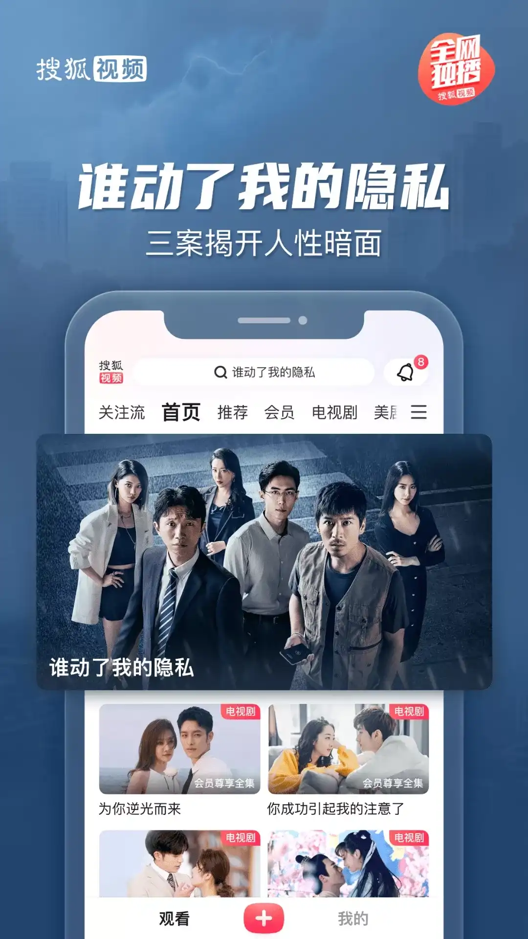《谁动了我的隐私》独播:三桩奇案直入人性隐秘; 《当祖国需要我们的时候》:三代兵团人用热血守护边疆; 《道格拉斯被取消了》:新闻女郎智斗行业老登; 《护花》独播:演绎战乱年代家国情仇; 《胜利者》:乱世兄妹从复仇者蜕变为抗日先锋; 《谍影追踪》:兄弟反目引爆连环杀局; 《夙夜集》独播:女将军复活揭开灭门真相; 《大玉儿传奇》:景甜从天真格格到铁血太后; 《假面迷情》独播:重生千金与豪门总裁三日定情; 《红腰鼓》:民兵少女智破敌局血战日寇; 《不思异:志怪》独播:江湖捉妖师破解妖祟谜案; 《南风何所依》独播:游戏设计师开挂驯服黑莲花城主; 《我的宠物少将军》独播:田曦薇演绎跨物种的奇妙爱情; 《胭脂似火》独播:许佳琪李卓扬深陷权爱斗争; 《洛基》:惊心动魄的时空历险即将来临; 《楚乔传》:赵丽颖乱世混战逆转命运; 《那年花开月正圆》:孙俪演绎陕西女首富的精彩一生; 《权力的游戏》:铁王座之争落下帷幕; 《风月变》:蝶变少女唯爱霸道将军; 《他在逆光中告白》独播,都市悬爱甜爽剧掀浪漫风暴; 《送一百位女孩回家》独播:重新定义女孩们的英雄主义; 《小猪佩奇》第十季:佩奇的新朋友闪亮登场; 《男人的战争》独播:于和伟应采儿情定商海; 《无心法师》独播:无心岳绮罗生死决战; 【搜狐视频,正在热播】 搜狐出品必精品:他在逆光中告白、无心法师、法医秦明、罪案心理小组X; 狐小狐强推综艺:星同事、送一百位女孩回家、狐厂大明星; 搜狐视频播主精彩纷呈:谭凯、汪峰、于文文、李子柒、四月晨晨、祝晓晗、医路向前巍子; 频道热播电视剧:风雨上海滩、男人的战争、楚乔传、战狼.战狼; 正版美剧抢先看:熊家餐馆、绝命毒师、风骚律师、权力的游戏; 在家惬意看电影:无名、流浪地球、莫斯科行动、抓娃娃; 热门动漫看不停:猫和老鼠、猪猪侠、小猪佩奇、小马宝莉; 播遍精彩韩剧:花样排球、评价女王、高品格单恋; 【软件特点】 热门综艺,高清美剧,日韩动漫,自媒体搞笑,只在搜狐视频; 优酷、爱奇艺、腾讯、乐视、PPTV、PPS等热门剧集应有尽有; 精品自制剧,搜狐出品,必属精品; 新鲜有趣自媒体,原创吐槽涨姿势; 千里眼频道,观全球、看现场; 预约精彩内容,从此再不错过 关注官方账号获取热门视频资讯、参与活动赢取福利噢~: 官方QQ粉丝群:435505340 官方微信:搜狐视频用户服务 官方邮箱:fankui@sohu-inc.com 官方微博:搜狐视频用户服务