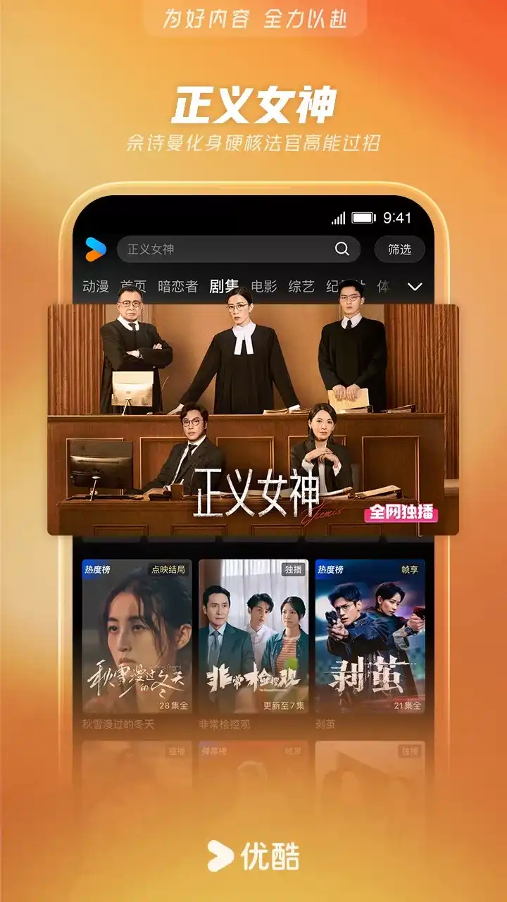 【精品内容,尽在优酷】 《正义女神》佘诗曼化身硬核法官高能过招 《怦然心动20岁:冬季》怦然系列重磅回归,开启浪漫冬日之旅 《庇护之地》杰森·斯坦森硬核救女 《我的山与海》我命由我!谭松韵逆袭改命当霸总 《寻秦记》古天乐林峯续写穿越传奇 《沧元图 前传》国漫双强纯爱CP超甜撒糖 《唐宫奇案》新春王炸!白鹿王星越破深宫诡案 《乡村爱情18》欢乐过大年!乡爱18谁看谁发 《情圣3》肖央化身“爱情侦探”反被套路 《周五晚高疯》内娱活人们携“秘密疯巢”周末出逃 《辽宁卫视春晚》过大年!优酷独家全程回顾 《师兄啊师兄》洪荒最强老六爽赢天道,稳到起飞 《秋雪漫过的冬天》赵又廷张子枫逆风翻盘 《暗恋者的救赎》罪与罚!绝望主妇深陷命案疑云 《非常检控观》炸裂开审!马德钟破解八大悬案 《风林火山》群星云集!暴力美学超爽港片 《剥茧》罗云熙变天才法医破诡案 《反人类暴行》品质好剧!《边水往事》导演新作 《逍遥》谭松韵侯明昊双世宿命奇缘 《山海经密码》以少年之志,破天命之局 《光阴之外》残酷末世少年屠神改命 《长安二十四计》成毅组团反杀到底 《天书黎明》探案小队寻宝藏破诡案 《百炼成神3》为爱逆天封神,挣脱宿命死劫 《凤凰台上》超级甜剧!任嘉伦彭小苒双强追爱 《神墓 年番》以我魔血染青天!少年踏破生死寻找身世之谜 《暗河传》热血江湖!龚俊执剑闯关破局 《新闻女王2》重磅回归!佘诗曼黄宗泽新闻职场风云再燃 《入青云》侯明昊×卢昱晓演绎宿敌变夫妻 《天相》废相少年度化灵煞逆转天命 《灼灼韶华》热依扎、杨祐宁携手逆袭闯商海 《师兄啊师兄》神仙年番看师兄!苟道成圣,稳到飞起 《凡人修仙传》爆款IP!杨洋热血修仙逆天改命 《哪吒之魔童闹海》哪吒涅槃重生高燃之战 《以法之名》年度狠剧!张译扫黑除恶掀司法黑幕 《云深不知梦》大女主复仇爽番来袭! 《藏海传》全员狠人!灭门案引连环杀局 国内外大剧热综、扎堆院线影片、二次元热血动漫……看视频,用优酷APP 【简介】 兼容Phone和Pad设备。优酷中国知名视频网站,优酷App为7亿用户提供电视剧,电影,动漫,音乐,新闻,娱乐,游戏,原创搞笑等海量影视,高清流畅播放,极速离线缓存,支持微博、微信、朋友圈一键分享。强大搜索功能,优酷在手,应有尽有! 【温馨提示】 期许与鞭策,只为更好的起航!当您使用中如有任何疑问或想吐吐槽,都热忱欢迎您致电我们:400-810-0580(或通过“APP-设置-问题反馈”专属通道留言),优酷君一如既往在等你! 同时,优酷君也期待您脑洞大开的创意与想法,为我们建言献策,凡经采纳即赠优酷定制精美礼品一份哦!