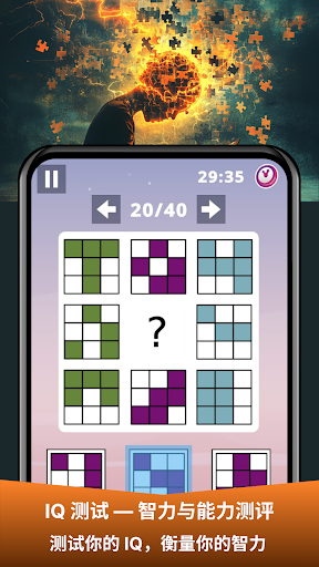 你有多聪明? 通过我们的大脑游戏、谜语游戏和智商测试(智商),您可以在刺激您的大脑和智商的同时测量您的智力能力。<br><br>很大一部分人的智商大约在 100 到 120 之间。进行智商测试,看看您的智商是多少。 名人智商:<br><br>- 阿尔伯特·爱因斯坦 IQ 175<br>- 沃尔夫冈·莫扎特 IQ 165<br>- 列奥纳多·达·芬奇 IQ 185<br>- 比尔·盖茨 IQ 160<br>- 史蒂芬·霍金 智商 160<br><br>快速智商测试,测测你的智商,仅需 30 分钟即可完成 40 道谜语游戏、逻辑游戏和数学游戏问题。 您执行的智商测试越多,最终结果就越真实。 通过谜语游戏、成人数学游戏和逻辑游戏的 4 种智商测试,您可以对真实的智商有一个非常粗略的了解。<br><br>您有心理测试或心理技术测试吗? 您想为下一次智商测试做准备吗? 我们创建了这个应用程序,以便您可以通过我们的谜语游戏和免费智商测试来训练您的大脑,并能够面对智商测试。<br><br>通过我们不同的逻辑游戏和谜语游戏来提高您的智力,挑战您的智商。 你的朋友比你聪明吗? 使用我们的智商测试应用程序和成人数学游戏以及逻辑智商测试来挑战他们。 它们会提高你的记忆力、逻辑性和智商。<br><br>对于警察或消防员等许多工作,您将接受能力倾向测试、心理技术测试或心理测试。 通过我们的谜语游戏和逻辑游戏为这些智商测试做好准备。 你未来的职业生涯可能取决于它,练习成人数学游戏。<br><br>智商测试分数用于教育安置、智力评估和求职者评估。<br><br>使用我们的谜语游戏和逻辑游戏应用程序进行智商测试,并与您的朋友竞争。 您可以参加成人数学游戏,看看谁更聪明。 玩我们的益智游戏可以提高您的智商并改善您的智商测试结果。<br><br>你认为你比你的朋友聪明吗? 下载我们的智商测试和谜语游戏应用程序并查看。 你只需要进行一些测试就可以知道谁更聪明。 我们的智商测试旨在在练习时改善您的大脑。 与您的家人分享我们的谜语游戏和智商测试。<br>您将获得一份包含您大致智商的证书,您可以发送该证书,以便您的朋友和家人也可以通过这个智商测试应用程序和逻辑游戏来训练他们的思维。<br><br>通过我们的智商游戏进行练习,您会得到更好的结果。 或者只是享受我们的数学难题并刺激您的大脑,使其不会老化。<br><br>此智商测试适合所有成年人年龄:<br><br>-年轻:准备你的智商测试来开始你的第一份工作。<br>-中年:大脑不必停止。 通过我们的数学谜题、谜语游戏和逻辑游戏锻炼您的大脑。<br>-高龄:我们的长辈必须训练大脑,使其保持健康年轻! 这些逻辑练习和我们的谜语游戏将使之成为可能。<br>为了防止大脑老化,训练大脑至关重要。 通过这款成人数学游戏以及我们的逻辑和智商测试游戏,我们将能够训练我们的大脑,使其不会生病并保持年轻。<br><br>玩谜语游戏、逻辑游戏或数学谜题可以改善你的大脑,让你变得更年轻。<br>您正在准备工作或入学考试的智商测试吗? 使用我们的智商测试应用程序及其谜语游戏和逻辑游戏进行练习,您将获得更好的分数。<br><br>你比他们聪明吗? 您想挑战您的朋友进行智商测试吗?<br><br>提高我们的智商是可能的,我们必须玩成人的逻辑游戏、谜语和数学游戏来训练大脑并保持年轻。 我们做的每一个智商测试或谜语都会得到更好的分数,我们会提高我们的记忆力和空间感知。 通过这款智商测试应用程序、谜语游戏和逻辑游戏,我们的大脑和逻辑将得到改善。 永远不要停止为成人制作数学游戏,你将在智力的各个方面不断提高。<br><br>与您的朋友分享您的最佳成绩并挑战他们并一起练习。<br><br>每次更新都享受这个智商测试、新的数学谜题和逻辑谜题!