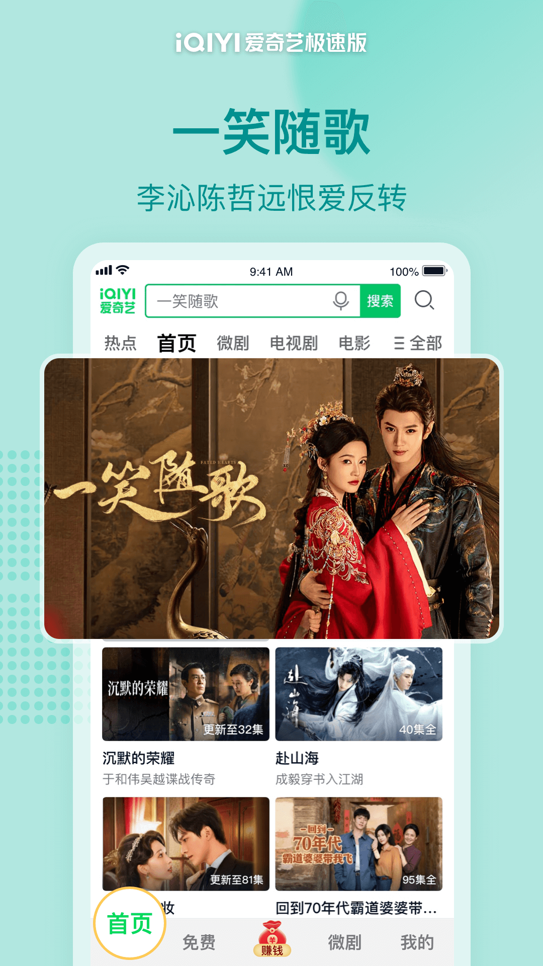 爱奇艺官方出品的APP,覆盖爱奇艺全部内容,功能简洁,内存占用少,会员更实惠,还能边看视频边赚金币 【更轻】安装包小,内存占用少,任何手机都能轻松运行 【更快】启动速度快,使用简单,视频播放更加流畅 【内容全】畅享3万多部热门影视和综艺,还有上万部微剧免费看 【更实惠】高性价比的基础会员,内容全,价格低,有广告 【能提现】边看视频边赚金币,现金提现秒到账,还能免费兑会员 【热播剧集】 《命悬一生》黄轩李庚希换命求生 《一笑随歌》李沁陈哲远恨爱反转 《沉默的荣耀》于和伟吴越谍战传奇 《赴山海》成毅穿书入江湖 【超燃电影】 《花漾少女杀人事件》张子枫演绎少女杀人 《东极岛》朱一龙吴磊杀敌救人 《长安的荔枝》大鹏杨幂荔枝结缘 《碟中谍8:最终清算》阿汤哥再续谍战传奇 【新鲜综艺】 《王牌对王牌第9季》开启王牌家族2.0时代 《姐姐当家》中女生活观察类真人秀 《喜剧之王单口季第2季》从小人物到喜剧之王 《天声一对》用舞台表达我爱你 【热门短剧】 《权宠黑心莲》爆款短剧:阴暗甜妹腹黑假太监 《此夜逢君》病娇世子:试毒先试我 《别惹真千金,她爹又帅又护短》重生养成女儿复仇弟弟 《烬雪染红妆》强取豪夺?少帅他超爱 《唯她是图》黑道禁欲总裁为爱当三 《回到70年代霸道婆婆带我飞》作精女配攻略全家 《正在通话中》哑女被绑架迷雾重重 《若熙传》爆款短剧:吴若熙虐渣上位步步惊心 【温馨提示】 如遇到问题,请打开爱奇艺极速版APP-我的-帮助与反馈,点击页面下方【意见反馈】进行反馈。若您的问题仍末解决,可在"我的-关于我们-联系我们- 在线客服" 进一步反馈或直接拨打客服电话(400-923-7171),您的反馈是对我们改善服务很大的帮助!