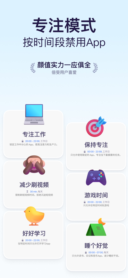 专注猫是一款专注屏幕时间管理应用,它可以帮助你: ◎ 专注模式:锁定让你分心的 App,更加专注完成一件事 ◎ 应用白名单:白名单外的App都会被屏蔽 ◎ 隐藏应用:完美隐藏不想被别人看到的App,掌控感带来安全感 ◎ 禁止删除App,防止误删意外数据丢失 ◎ 禁止下载App,避免小朋友玩手机无故扣费 ◎ 设置玩游戏、刷短视频时间上限,避免小朋友玩的太嗨了 ——— 我们严格的做好隐私保护,专注猫不主动追踪和收集任何数据,不使用任何第三方SDK和服务,所有数据都只存在本机和iCloud同步。 如果在使用中遇到问题,请通过App内「反馈建议」与我们联系,也欢迎给我们写邮件提建议,联系邮箱:leohuang.ux@gmail.com ——— 专注猫高级会员自动订阅说明 确认购买并支付后,将通过您的 iTunes 账号自动续订。苹果 iTunes 账户会在到期前24小时内扣费,扣费成功后订阅周期顺延一个订阅周期。如需取消续订,请在当前订阅周期到期前24小时以前,手动在 iTunes/AppleID 设置管理中关闭自动续费功能。服务由您自主选择是否取消,若您选择不取消,将为您开通下一个计费周期的续费服务。 用户协议 https://hidingcat.super.site/terms 隐私政策 https://hidingcat.super.site/privacy-policy