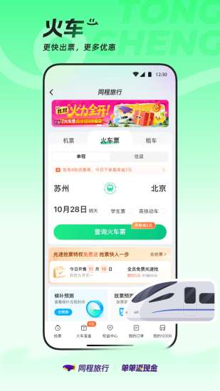 新人专享919元出行大礼包 火车票、机票、租车、汽车票、酒店都可减 【首单优惠】优惠中心全面升级,自动立减,下单更划算~ 【租车返现】租车可返现金,智能筛选精选车辆,精准推荐,选择更多,租车更安心! 【服务升级】抢票服务升级,余票监控在线购票,体验更好。 【更新】优化活动展示和积分商城好物好券上新