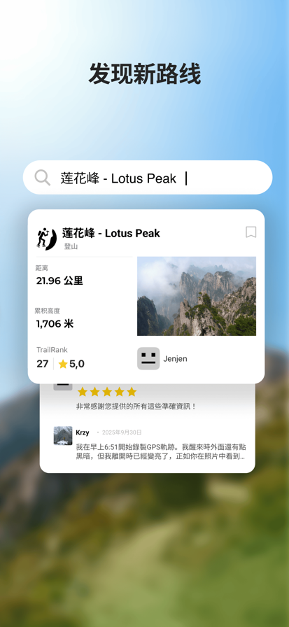 【充分准备,省时不费力】 快速规划路线 轻松估算距离、高度变化与行进时间,依你需求客制化,爬百岳必备规划工具。 ▶ 探索超过 27 万笔路线灵感 搜寻 1,700+ 条步道资讯与 27 万笔活动纪录,路线、导航、天气、路况一手掌握,直接下载参考最方便。 ▶ 3D 地图预览路线 切换 3D 地图或播放 3D 影片预览路线,直觉掌握地形与高度变化。 【自信探索,尽享精彩】 ▶ 免费取得全球离线地图 无网路也能精准定位,安心不迷途。Pro 会员可查看通讯点、水源位置,并显示困难路线。 ▶ 自动分享当前位置 自动与亲友或留守人分享即时位置,逾时发送警报,安全更有保障。 ▶ 偏移路线警示 偏移参考路线时,即时接收通知与语音提醒,探索山径步道更安全。 ▶ 完整活动追踪 记录完整轨迹与运动数据,添加文字&照片让纪录更精彩。 ▶ 为 Apple Watch 量身打造 免拿手机就能快速记录,并随时掌握身体状态。 【回顾成就,分享体验】 ▶ 3D 回顾重现精彩活动 透过 3D 视频重温探索历程,还能直接用视频或用链接分享给朋友。 ▶ 云端备份,纪录不遗失 活动纪录安全存云端,换手机也能无痛转移。 ▶ 多平台整合 连接 Garmin、COROS、Fitbit 或 Apple「健康」,整合所有户外活动资料,让 Hikingbook 成为你户外生活的中心。 ▲▲ 升级 Pro 会员,户外安全随行,精彩由你掌握!首次体验 7 天免费,下载 App 了解详情 ▲▲ ◆ 更多独家功能 • 专栏文章定期更新,学习更多安全知识、并取得最完整的路线攻略与推荐。 • 整合 Apple「健康」应用程式,可追踪行程的距离与体能训练资料。 • 支援台湾常用的 WGS84、TWD67、TWD97 大地测量系统与 TM2、DD、DMS 常用座标格式。 ◆ 贴心提醒 • 若开启轨迹纪录功能,App 会在背景模式执行 GPS,长时间在背景模式执行 GPS 可能会加速耗损电力以及降低手机电池的寿命。 • GPS 虽然能增进在野外活动的安全性,但并不能完全取代指北针、地图等传统的定位定向工具。此外,GPS 会因植被、地形和天气等因素产生定位误差,甚至没有收讯,使用前请务必了解其局限性。 ◆ 与我们联络 找客服,很容易! 如果你有使用上的问题,请透过以下任一方式与我们联络: • 客服信箱:support@hikingbook.net • FB 粉丝团:https://www.facebook.com/HikingbookTaiwan • 需要使用教学吗?请前往支援中心:https://support.hikingbook.net/ 服务条款:https://hikingbook.net/terms