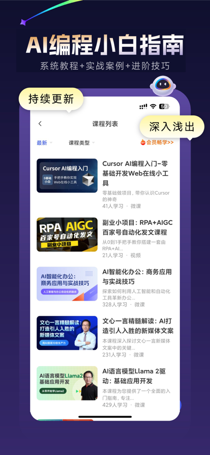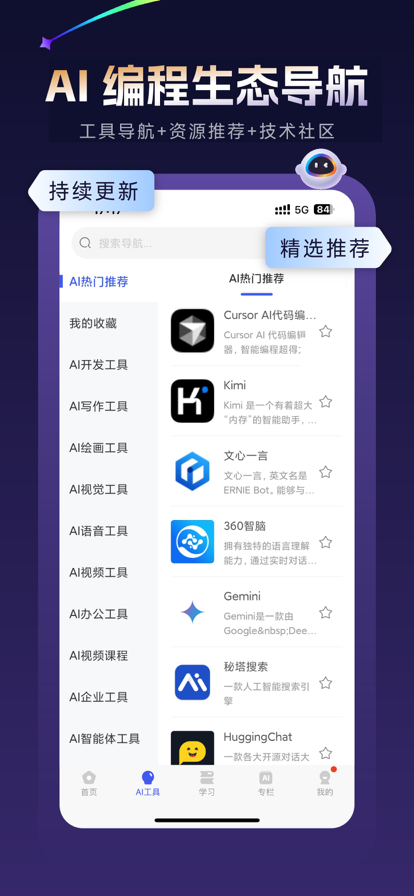 AI编程狮 - w3cschool开发的 AI 编程学习APP AI编程教程|AI导航|编程工具|AI 热点 ,一站掌握AI全技能 【核心功能】 专业的AI工具教程 1、深入解析Cursor、GitHub Copilot、Codeium等 AI 编程工具使用技巧,手把手教你提升10倍编程效率 2、从基础操作到高级技巧,循序渐进的学习路径 3、优质AI编程工具使用攻略与提效秘籍 精选AI导航 1、严选100+优质AI网站与工具 2、及时更新,及时加入新型优质工具 3、省去筛选时间,直达最佳AI助手 前沿AI资讯 1、实时跟踪AI领域最新突破与进展 2、深度分析AI技术发展趋势 3、第一手AI领域热点事件追踪 【用户反馈】 "教程太棒了!按照指南学习,一周就能熟练使用AI编程工具!" "导航功能帮我省去了大量寻找工具的时间,推荐的都很实用!" "从一个编程小白,到现在能熟练运用AI工具,全靠AI编程狮!" 现在下载加入AI使用导航,和 400 万+用户一起,在AI时代提升自己!