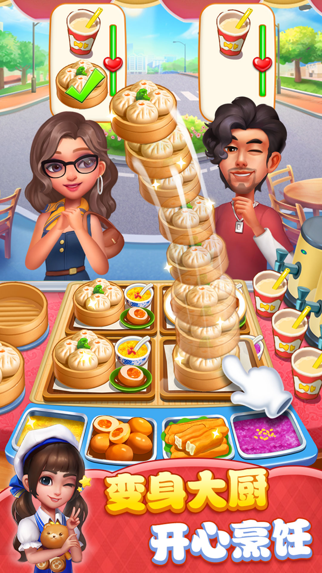 无论是正经吃货,还是巧手厨师,爱美食的你一定不能错过《小镇大厨》!操作简单,点击即玩。制作食物,喂饱每一位顾客,赚取收益,升级你的专属厨房。在这里,你会不断挑战新餐厅,遇见可爱迷人的顾客,解锁世界各地的美食菜谱,成为小镇当家美食大师! 来《小镇大厨》尽情烹饪美食,化身疯狂厨师,随时随地开启美味之旅! • 上百种美味佳肴,喂饱饥肠辘辘的顾客! 麻辣烫、煎饼果子、汉堡、披萨......在特色主题餐厅里展现你的烹饪技巧。 • 在全球各地烹饪美食,环游世界变身大厨! 从古典咖啡到中餐馆,户外烧烤到甜品屋。你唯一的目标就是提升厨艺,不断解锁新的关卡,开启新餐厅。然后乘坐飞机带着你的烹饪技术,走向世界。 别忘了领略每座城市的独特风情,学习并制作当地特色美食,成为烹饪发烧友中的一员! • 独具特色的强力道具,助力明星大厨之路! 经验老道的厨师总会有自己的专属技巧,使用魔法道具来完成特殊的烹饪目标。让食物永远不会烧焦的防护锅,秒速制作的大厨技能……这些烹饪魔法已经全部为大厨准备好了! • 厨房升级提升效率,升级食材赚取奖励! 别忘了升级你的食材和厨具!高档绿色的食材是美味的基础,高级的厨具会让烹饪更加得心应手,卖个如意价钱不是什么大问题! 成为《小镇大厨》的顶级厨师,在口袋里经营你的餐厅。立即下载,开始做饭啦!