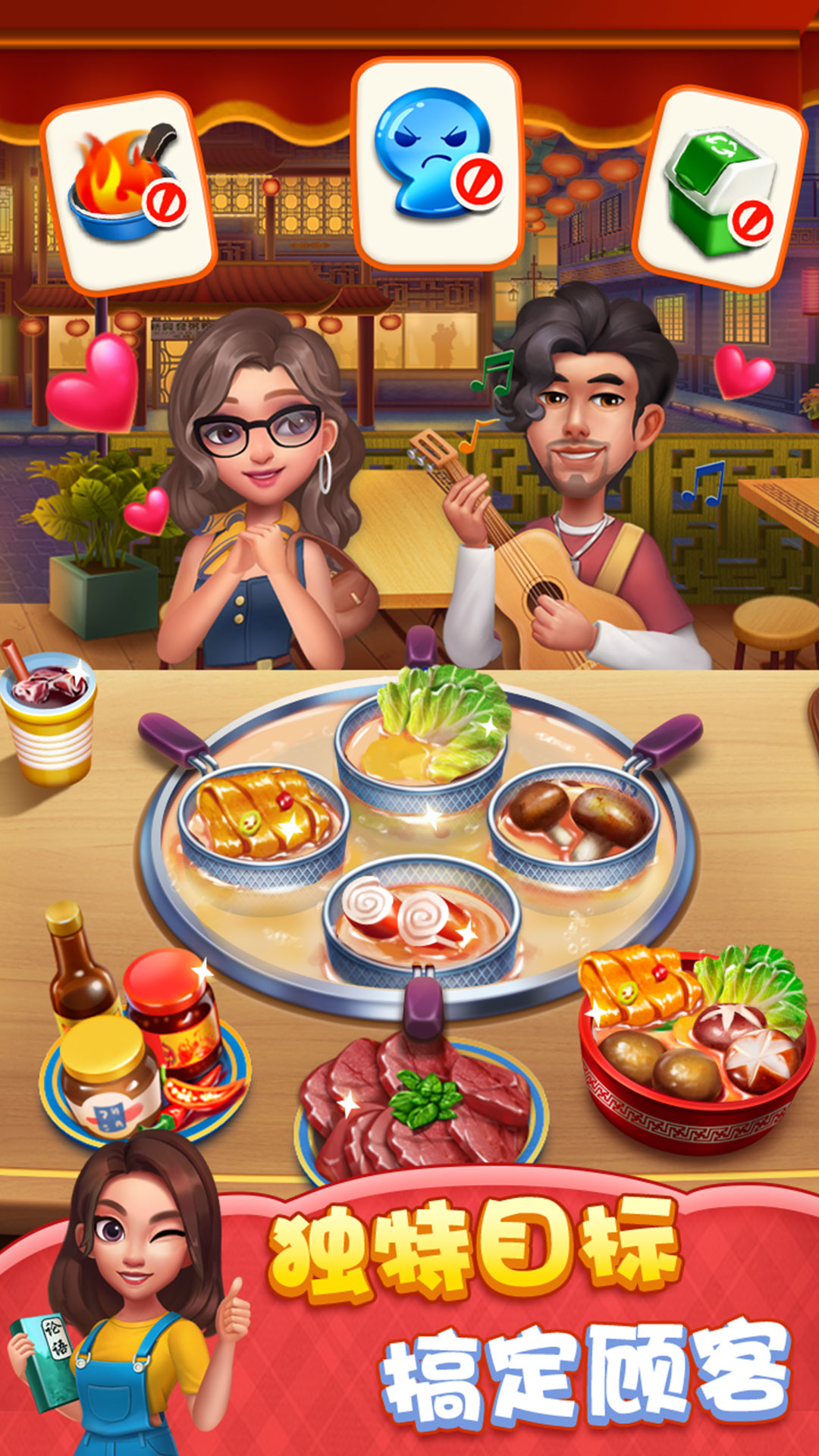 快来《风味美食街》一起烹制世界级美食吧! 操作简单,食材多样,合理管理时间,经营属于您的世界连锁餐厅! 烹饪世界各地美味佳肴 从牛排汉堡,到海鲜烧烤,从甜品蛋糕,到珍馐佳肴,只有您想不到,没有我们做不到! 每一家特色主题餐厅都为大厨们准备好了新鲜的食材和丰富的菜品,等待各位大厨们大显身手! 开启特色风味主题餐厅 优雅浓郁的咖啡厅,香气四溢的汉堡店,低调古典的中餐厅,甜蜜凉爽的冰淇淋店,每一个梦幻精美的店铺都保证让您赞不绝口!快快提升您的厨艺,熟练掌握每种美食的烹制方法,解锁更多主题餐厅,成为真正的世界顶级大厨吧! 熟练掌握烹制策略技巧 学会连连上菜——能获得额外的金币和成就,说不定也能成为您逆转局势的关键 升级食材厨具——升级食材可以增加您的收入,升级厨具可以减少烹制时间 使用魔法道具——帮助您更加顺利的完成烹饪目标:防止食物烧焦的防护锅、增加顾客等待时间的小甜品、让收入翻倍的有机食材...适当利用这些魔法道具会让您更加游刃有余的面对顾客! 游戏特色 操作简单,极易上手 超过6家特色主题风味餐厅 使用80多种食材烹制超50种世界各地的美食 设有150+个精良的关卡,且有循序渐进3种难度 可爱有趣的魔法道具助您通关 数百种厨房用品和食材等您升级 还有更多餐厅和佳肴即将来临! 玩法详情: 不用担心,只需一根指头就可以完成所有操作:根据顾客订单上的食物,按照顺序点击食材制作食物,待食物制作完成,点击成品完成顾客的订单即可。