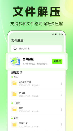 【互传】你还在为手机搬家烦恼吗?手机互传,让手机互传更快更稳定!高强度加密技术,保证安全。零流量,无需注册,让你的生活更加轻松便捷! 【文件管理】支持新建目录、文件重命名、移动、删除,搜索,排序等操作,支持按类型、名字、日期、大小文件排序,操作方便 【文件解压】支持zip,rar,7z等压缩包的解压和压缩,极大提升日常办公,文件管理的工作效率 【PDF转换】专业的PDF工具,帮助您在各种场景下进行PDF格式转换,多种格式的文档、图片、演示文稿,都可直接在手机上转换为PDF格式,也支持将PDF文件转位其他格式,一切轻松、简便。