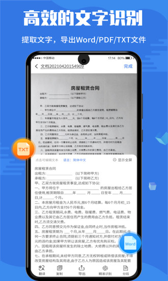 【限时福利】开通文字提取申请会员买1送1!额外加赠热门平台会员:芒果TV/腾讯视频/B站(三选一),超值双重权益即刻拥有! 文字提取神器是一款一款OCR拍照识别软件,使用手机就可以实现文字识别、手写识别、拍照翻译、批量扫描识别、手写识别等功能,识别后的文字可以进行在线编辑调整、翻译,并且可以导出为word、txt等多种格式,是您的移动多功能扫描仪。 ----功能亮点---- 【语言种识别】 支持多种语言精准识别提取,即使是印刷手写也可高效识别,默认自动扫描,解放双手。 【图片转文字利器】 智能 OCR 识别文字,即使搜索对象是图片,也能输入关键词轻松定位,高亮显示。 还能一键复制、编辑图片上的文字,支持导出为 Word格式。 【录音转文字】 支持实时录音识别,将录音实时文字提取;支持导入手机系统中的录音,然后将录音文件转换成文字,极大的提高了您的工作和学习效率! 【手机号码识别】 提供号码快速识别功能,快速拍照或本地导入,即可一键识别! ----他们都在用文字提取神器做什么--- - ● 职场人士:随时扫描手边合同、公司证件、开会 PPT 等,一键保存文档,自定义命名,可随时查