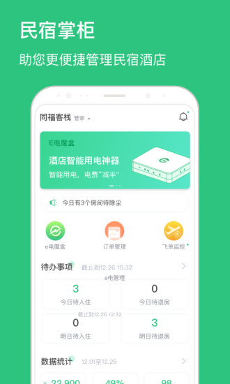 【悦宿——轻松管理民宿 · 网约房】 “悦宿”是一款专门针对民宿、网约房等住宿行业的服务类工具,提供PMS系统服务,更高效地帮客户解决问题。通过智能门锁实现入住自动发放授权,退房自动回收授权,使旅客无需实体钥匙一键开门。通过退房自动转脏房、脏房自动安排保洁实现旅客退房即可自动安排保洁,无需手动派单。 【核心优势】 1、多门店集中管理 同个账号支持创建多个门店,可通过切换门店随时查看各个门店的房态以及订单 2、经营情况可视化 自动统计入住率、以及今日/明日的入住/退房订单等多项指标,便于日常管理 3、房态信息实时查看 系统自动同步该门店下其他账号对于房态信息的修改,可以通过颜色区分不同状态的订单并跟进 4、订单快捷管理 支持通过筛选查看不同状态的订单并跟进,入住、离店、续住、开关房,快捷完成高频次日常工作 5、智能门锁自动授权 支持一键导入当前账号相关智能门锁,并支持智能门锁自动授权,入住自动发放,退房自动回收 【服务对象】 民宿、网约房等住宿行业 【联系我们】 电话:4001511528