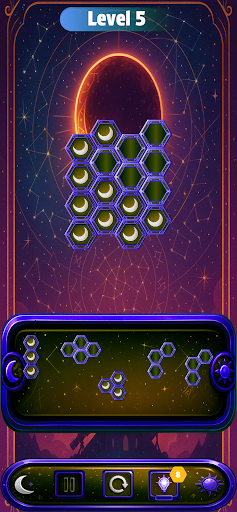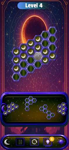 星辰散落,它们在天空中的和谐被打破。只有你的触碰才能重新排列宇宙的图案,重燃逝去的光芒。你放置的每一块六角形方块都将成为黑暗中的一丝火花——秩序的碎片回归天空。<br><br>这款解谜游戏平静而引人入胜,融合了策略、对称性和宁静。从简单的图案开始,逐渐深入到散发着天体能量的复杂星座。每一块方块的契合都有其存在的意义;每一次移动都是迈向宇宙完美的一步。<br><br>🌌 玩法<br><br>拖放:将六角形的星团移动到星界网格上。<br><br>精准匹配:正确对齐后,星星会发光并锁定到位。<br><br>提前思考:合理利用有限的空间,规划完美的排列。<br><br>完成图案:填满每个发光的格子,即可恢复完整的星座。<br><br>💫 挑战与辅助<br><br>宇宙屏障:部分格子被阻挡——找到巧妙的绕过方法。<br><br>重置与洗牌:重新思考布局,不受惩罚;策略奖励耐心。<br><br>提示系统:当星星排列不齐时,揭示下一个完美位置。<br><br>🌙 为什么你会喜欢它<br><br>宁静的氛围:柔和的色彩、闪耀的动画和轻柔的天籁之音。<br><br>巧妙的挑战曲线:简单的开局,逐渐演变成精彩的复杂关卡。<br><br>令人满意的设计:每一次“点击”都感觉像是完成了宇宙的一部分。<br><br>用心的游戏:没有计时器,没有匆忙——只有你和星星重新找到平衡。