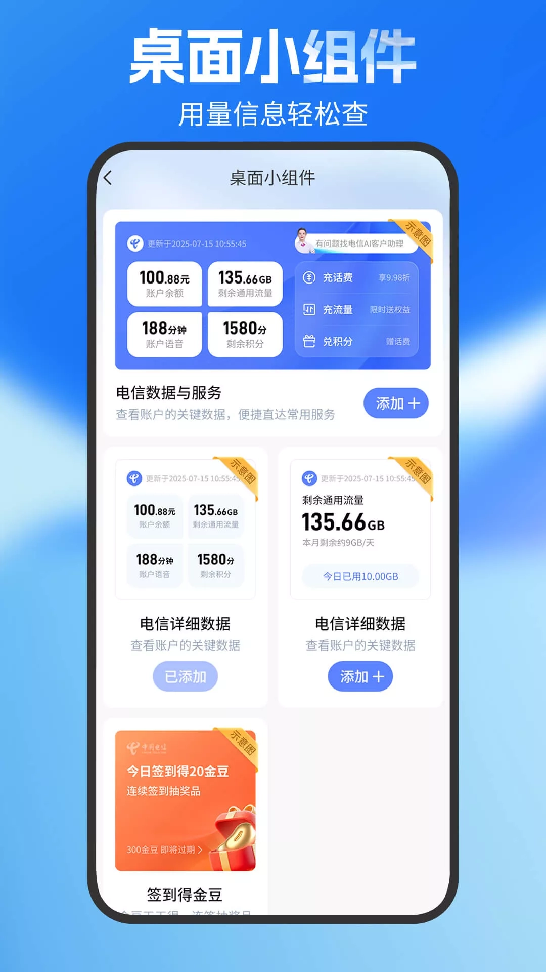 【多重福利】福利升级,海量好礼等您来! 暖心福利包:抽限量100元话费、海量福利月月领不停。 签到打卡:连续签到、每日打卡抢兑至高10元话费。 新人礼包:新用户注册领专属10元话费券。 充值福利:手机、宽带、固话充值享专属折扣。 【服务优化】 中国电信APP12.0重磅升级! 首页焕新:首页焕新AI升级,智能精准更知心意。 服务升级:服务大厅隆重登场,特色服务贴心查询。 授权管理:三方服务安心管理,全面保护数据安全。 【精选内容】 您可在电信星播客观看热播影视综集锦、热门金曲视频彩铃等精彩短视频;还有专享超值直播间,万家厅店网罗全网底价商品优惠,更有5G手机折扣、话费、流量、终端权益多种好礼送不停! 中国电信APP官方服务QQ群: 240861967,本群仅针对如中国电信APP出现无法正常登录、闪退、数据查询失败等相关内容进行答疑解决,如您有关于中国电信业务等方面其他问题,也可以直接致电当地10000号进行咨询。