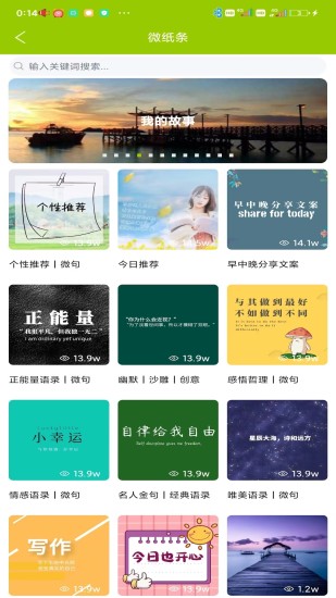 「微句」,一句不简单的话,一句有温度又有力量,有个性又有创意的文案。「微句」App致力于打造创意共鸣的优质短句文案工具,成为服务于各行各业既好用便捷又高效专业的高质量文案应用。【微句】App初衷是鼓励每个人从简约而不简单的「一句话」文案开始,努力让阅读创作记录总结成为每天习惯做的事。包括: 1. 微句:一句不简单的话,一句创意共鸣的话,一句关于「 生活」经历和「 人生」体会的话。或源于看了一部电影、看了一本书、看到了一句话、听了一首歌、经历了一件事、想到了一个点子、领悟到了一个道理,或展现独特见解,或表达人生感悟,或书写生活的喜闻乐见,或分享幽默诙谐。 2. 文案:各类创意共鸣的短句文案,包括朋友圈文案、自媒体短视频文案、各行各业营销文案、情感文案、正能量文案、感悟文案、生活文案、早安晚安生日美景美食等日常文案、小众创意文案、幽默搞笑文案、旅行文案、运动文案、月份文案、节日文案等。 3. 微纸条:时刻记录生活记录你,帮助您随时随地轻松记录生活、学习、工作中点点滴滴的一切。 4. 笔记:记录你的点点滴滴,让文字见证你成长路上的每一步。