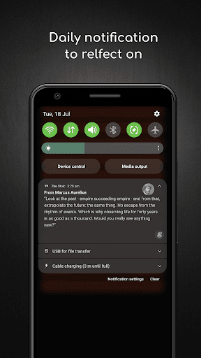 Le Stoic 目前包括:<br>——马库斯·奥勒留的《沉思》<br>- Epictetus的“Enchridion”和“Discourses”<br>- 塞内卡的《关于心灵的平静》和《致卢西利乌斯的道德书信》<br>- 还有很多<br><br>什么是斯多葛主义?这是一种旨在让我们更有韧性、更快乐、更美德和更智慧的哲学——因此,我们会成为更好的人、更好的父母和更好的专业人士。<br><br>“在所有的人中,只有那些为哲学腾出时间的人是闲暇的,只有他们真正活着。他们不满足于仅仅对自己的日子保持警惕,他们将每个时代都吞并到自己的时代。过去的所有收获都添加到他们的商店中。 ”——塞内卡<br><br>您会发现 Marcus Aurelius、Epictetus、Seneca 等人的想法。<br><br>Daily Stoic 应用程序的特点:<br>-------------------------------------------------- ----------------------<br><br>* 精心挑选的、鼓舞人心的斯多葛主义名言。<br>* 简洁、优雅、美观的设计,让您倍感舒适。<br>*根据手机设置为用户体验自动暗/亮主题。<br>*作者部分,其中包含斯多葛派哲学家的概要以及引文。<br>* 左右滑动查看更多报价。<br>*如果您感到无聊,请随机引用部分。<br>* 前一个阅读报价的持久性。<br>* 将报价下载为图像。<br>* 只需双击屏幕或点击心形图标,即可将报价添加到您的收藏夹。然后,您可以从菜单中选择收藏的报价以供以后查看。<br>* 通过电子邮件、Facebook Whatsapp、短信向您的亲人分享报价。您还可以将报价复制到剪贴板。<br>*最好的部分是它可以离线工作并且零广告,不需要互联网连接!
