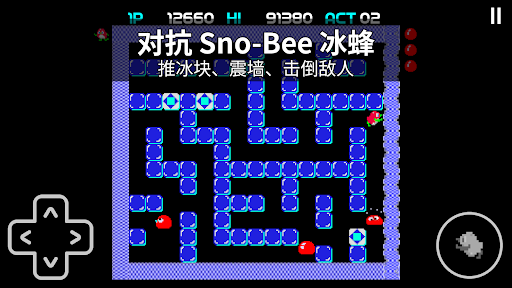 [游戏概要]<br>玩家操控着一个在南极生活的红色企鹅,这只企鹅就是这游戏的主角“彭哥”(Pengo)。彭哥可以推动冰块,将伤害它的敌人“思诺比”(Sno-Bee)给压扁。<br>彭哥一次仅能推动一块冰块,若彭哥一次推动两块冰块时,离彭哥最近的冰块会融化。倘若这个冰块藏着思诺比的卵,彭哥吃掉可获得额外分数,思诺比的卵伤害不了彭哥,但是孵化后的思诺比,可直接伤害彭哥,使玩家失去一条生命。<br><br>在每个关卡开始时,一定数量的蛋孵化成思诺比,而其他冰块则闪烁以表明它们含有蛋。孵化后的思诺比,攻击性较强,它们也有两只手推冰,或者可以将冰块给融化。因此思诺比也有可能走着捷径,找出最近的路线伤害彭哥。<br><br>每个关卡的目标是通过以下三种方法之一杀死所有的思诺比:<br> • 滑动冰块压碎它们<br> • 破坏含有未孵化思诺比蛋的冰块<br> • 透过推动墙壁产生电流击晕思诺比后, 吃掉该思诺比<br><br>该游戏共有18个关卡。在每二个关卡完成后,将会显示一段间歇动画。<br><br>[分数计算]<br>如果彭哥推动冰块压死思诺比,一次压死的数量越多,分数也就越高。<br> • 一次压死一只思诺比,可得400分<br> • 一次压死二只思诺比,可得1,600分<br> • 一次压死三只思诺比,可得3,200分<br> • 一次压死四只思诺比,可得6,400分<br><br>彭哥每融化一块冰块,可获得30分的分数。倘若彭哥一并吃掉思诺比的卵,还可获得500分的分数。<br><br>画面四周的墙壁,玩家可以推动这些墙壁,让墙壁产生电流,让靠近该墙的思诺比麻痹一段时间,此时的思诺比没有伤害能力,彭哥若吃掉该思诺比,可获得100分的分数。<br><br>玩家在进行每一关卡时,若能顺利过关,完成关卡秒数的长短,影响着额外加分的多寡。<br> • 20秒以内过关,可额外获得5,000分的分数<br> • 20秒到29秒过关,可额外获得2,000分的分数<br> • 30秒到39秒过关,可额外获得1,000分的分数<br> • 40秒到49秒过关,可额外获得500分的分数<br> • 50秒到59秒过关,可额外获得10分的分数<br> • 超过60秒过关,不给分。<br>另外, 玩家每50000点将会增加一条生命, 但最多只能有五条生命。<br><br>[钻石冰块]<br>钻石冰块是方形冰块内有菱形图案的冰块,思诺比与彭哥都不能融化。但是彭哥还是可以推动钻石冰块,压死思诺比。但彭哥也不能一次推动面对着它的两个钻石冰块。<br>在每个关卡中都有三个钻石冰块。倘若玩家能够将这三个砖块水平或垂直的连在一起,可先获得额外10,000的分数后,思诺比会被麻痹一段时间(与电流墙一样的效果,但效果更好),当然此时彭哥就可以吃掉被麻痹的思诺比。<br><br>立即下载,开始这场冰块的战争 !