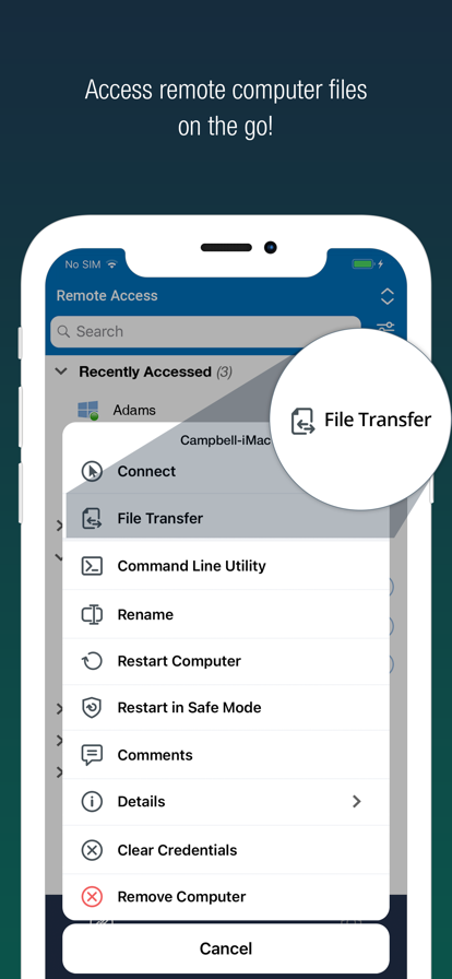 Access remote computers anytime by installing the RemotePC application on your iOS devices. Connect to your office or home computers from anywhere with a speed of 60 FPS and 4K quality. Access files, folders, emails, and software applications on remote machines, whether it's after-hours or while on the go. Features: • Instant remote computer access, provided there is an active internet connection and RemotePC application installed on it •. Connect to multiple remote computers at the same time and manage each session independently. • Provides efficient team work with friends or colleagues by accessing their remote computers to work on presentations, documents, view/edit media files, etc. • Access PCs and MACs using your iOS devices. • Enhanced performance and low latency • Cross-platform compatibility • 60 FPS speed allowing 4K quality • Faster remote streaming for gamers Functionalities: • Transfer files via your iOS devices and computers with/without remote session. • Enable inactivity timeout to retain remote session running in the background for the specified time. • Lock the remote system via your iOS device. • Configure the display quality and speed of the remote session. • Modify the screen resolution of the remote display • Record remote sessions while accessing via iOS devices. • Control clipboard actions (copy and paste) from your iOS devices. • Access and manage logged off and locked devices remotely. • Remote printing of documents and images using a local printer. • Chat with the recipients for effective communication. • Enable ‘Trusted Devices’ for enhanced security of your RemotePC account. • Enable ‘Blank Host Screen’ to work privately on your remote device by turning the screen blank. • View multiple monitors at the same time for Enterprise accounts. • Restart your remote system via the iOS device in a safe mode. • Collaborate effectively by using Whiteboard to draw on the remote screen. • Multiple users can simultaneously access and work on a single remote machine. • Multitask during remote sessions by opening multiple iPad apps simultaneously
