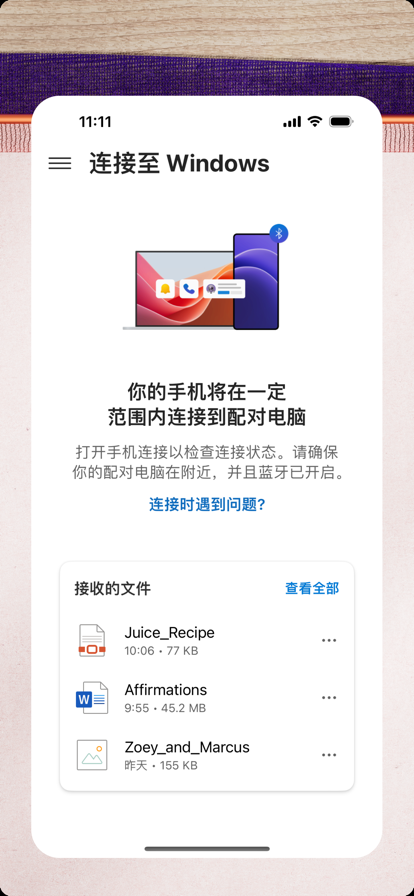 你喜欢你的手机。你的电脑也是如此。直接从电脑即时访问你在手机上喜欢的所有内容。若要开始,请将 iPhone 与 Windows 电脑上的手机连接功能连接。 在电脑上享受这些手机连接功能: • 拨打和接听电话 • 管理你的手机通知 • 阅读并回复短信 • 查看你的电话联系人 • 在手机和电脑之间共享文件 适用于 iOS 的手机连接需要运行 iOS 16 或更高版本的 iPhone,并且具有 蓝牙低功耗 (BLE) 支持使用 2019 年 5 月更新或更高版本) 或Windows 11运行Windows 10 (。不适用于 iPad (iPadOS) 或 MacOS。 安装此应用即表示你同意Microsoft使用条款 https://go.microsoft.com/fwlink/?LinkID=246338 和隐私声明 https://go.microsoft.com/fwlink/?LinkID=248686