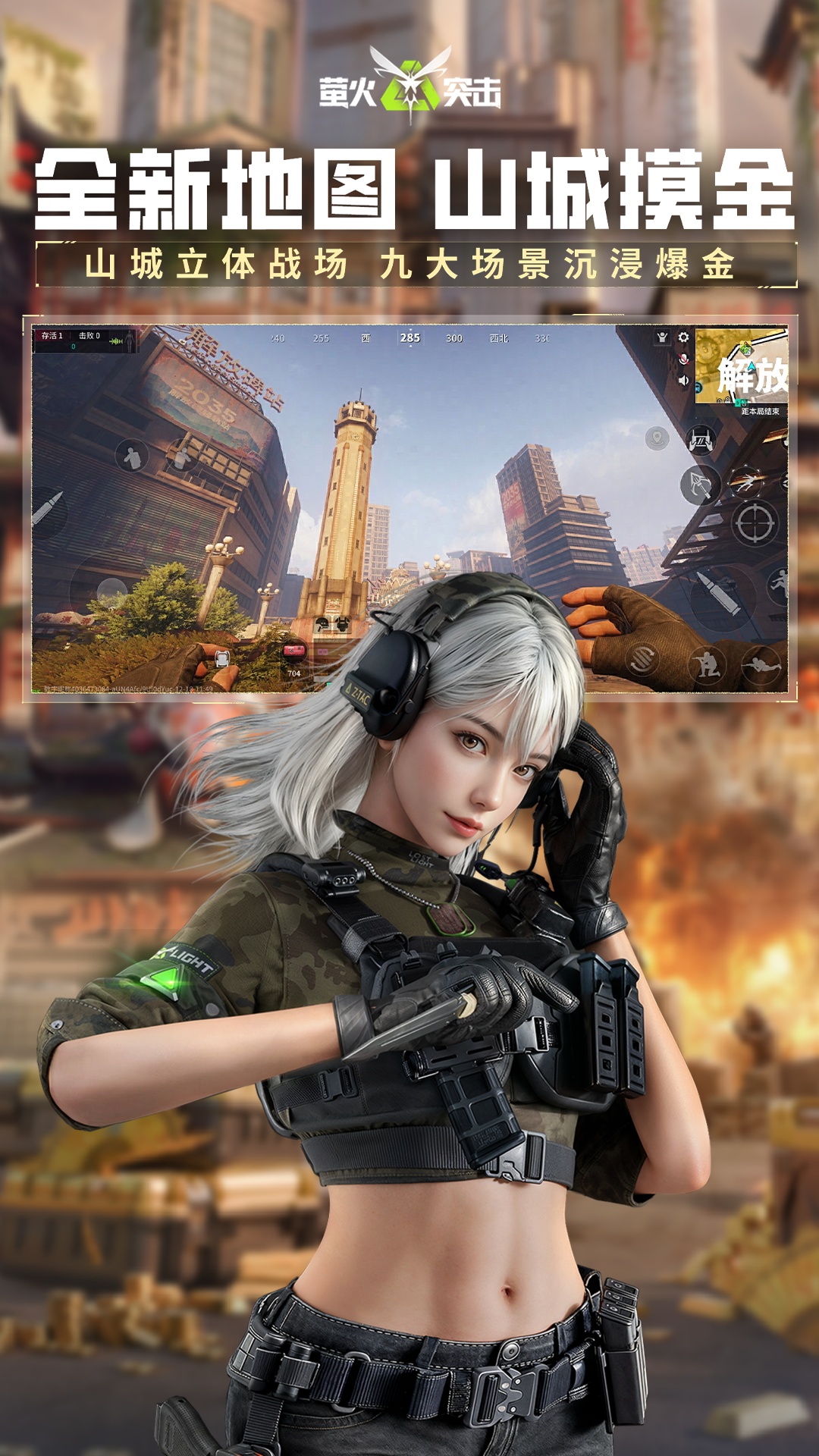 萤火突击SS7新赛季【飞掠山城】12月25日正式开启!史上最大立体地图山城来袭,搭配全新裂空飞梭玩法,高空激战超巨型BOSS「生物兵器-雷蒙德」!赛季新宠八筒听音护主,非遗大金九艺天工传承川渝文化,还有全新玩法「道劫诡录」配合盗墓笔记联动上线,分金定穴斩妖除魔,揭开山城另一面……热辣山城,巴适摸金!沉浸式山城摸金之旅现已开启!<br>【全新地图 山城摸金】史上最大立体地图山城上线,双排红区、黄区烈度自选,7大核心区域还原山城8D魔幻地貌,轻轨穿梭、滑轨吊桥高速转点体验城市楼宇间的“飞打撤”!更有解放碑火金守卫战、麻将钥匙收集、吊桥门卡等趣味玩法!<br>【裂空飞梭 激战巨人】 首创“飞打撤”全新摸金体验,飞梭装置助你高空激战24米超巨型BOSS「生物兵器-雷蒙德」,感受狂暴模式下雷蒙德的极限压制,体验近战武器高空击杀的快感! <br>【川渝传承 非遗大金】 全新赛季大金九艺天工登场,萤火首套非遗大金正式上线!川剧大师联袂打造非遗大金,九款折扇大金承载川剧、舞龙、皮影、麻将、糖画等传统文化符号。 <br>【赛季新宠 听声护主】 全新赛季宠物“八筒”上线,独有的信息侦察&压制能力助你制霸信息战场!速来“领养”你的机械忠犬,正式踏上重返山城之旅。 【山城诡谈 斩妖除魔】 全新玩法“道劫诡录”上线,手持桃木剑、罗盘斩妖除魔,对抗僵尸、窦娥等玄幻BOSS,玄学摸金化身捉鬼大师!更有盗墓笔记联动即将上线,分金定穴揭开道诡山城另一面!