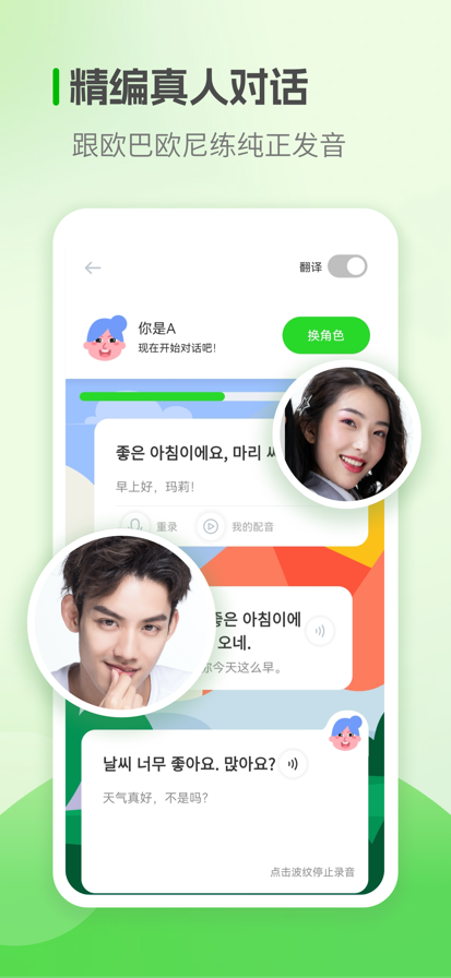 【刷韩国综艺韩剧学韩语】 看idol爱豆pk韩语!韩影库韩剧迷韩漫迷的乐园!韩剧app韩剧电影韩剧大全精编课程随你挑!追星girl等你来!打造看得懂的人人韩剧! 【零基础韩语入门】 韩语起步速成!韩语学习快速入门,韩语发音词汇入门,韩语发音单词学习,韩语词汇免费学,真人韩语发音,精准指导韩语口语和韩语发音!韩语发音表快速掌握!韩语学习神器! 【中文韩语罗马音一一对应】 超强韩语词典学习韩语单词!韩语翻译神器,出色的韩文韩语翻译器,韩语翻译官!中韩翻译利器!用韩语输入法练习韩语!像聪明的羊驼一样学韩语! 【场景韩语口语会话】 精心制作,真人韩语配音,给你感受不一样的新概念韩语!日常韩语口语,有趣配音语言学习好帮手,听基础韩语口语天天练!让你学会精准的疯狂韩语发音!超级韩语魔方秀!无论你奋斗在韩国想融入当地,还是在中国学韩语,全部满足你的需求! 【随时随地学韩语】 乘公交地铁背单词,你真正的口袋韩语,随时随地,想学就学! 【另有系列小语种学习产品等你来】 日语、法语、德语、俄语、泰语、汉语、英语等等 一起来学韩语吧!don't,drops,yourself!