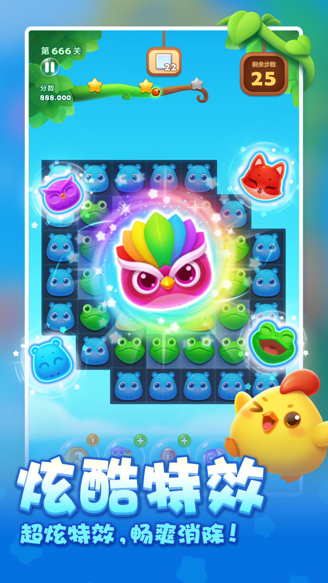 作为《开心消消乐》的姊妹篇,《海滨消消乐》带你开启全新冒险,新增章鱼NPC,更有【收集椰子】【浪漫约会】【制作冰淇淋】【抓娃娃】【大战章鱼】【潜水拍照】【开心钓鱼】等全新玩法等你体验! 【全新玩法 快乐依旧】 海滨消消乐推出7种新鲜玩法,每种关卡类型都有小动物们的陪伴,精心设计的2000余个关卡,92个元素,可以让你尝试不同的趣味玩法,更有超炫酷特效效果, 每一关都竭力为您带来极致的消除体验! 【章鱼捣蛋 海滨奇遇 】 新增章鱼boss!这只萌贱章鱼,不仅抓走了船长,还时常捣乱,在章鱼关卡中,需要收集小动物释放技能打败它,但仅靠小动物们是不足以收拾坏章鱼的,这时就要借助海星的力量,海星可以打掉章鱼更多血条,记得借助它的力量! 【海边小食,收集椰子】 海边有椰子和冰淇淋店,想吃到美味的椰子需要完成所有小动物的收集目标,想吃到冰淇淋就要消除水果上的所有冰块,当前所有水果收集完毕后还会产生下一波,完成所有顾客的订单就能顺利过关! 【浪漫约会 点亮星座】 在么么和栗雄约会的模式中,消除宝石可以帮助栗雄沿路前进,成功到达终点就能获得么么的鲜花!夜幕降临,海风柔柔,海边的星空神秘又浪漫,一个个美丽的星座等着你去发现。 【潜水拍照 探索海域】 海底的小乌龟被困住了,想要帮助它逃脱就得收集小动物可以清除格子上的沙子,水流才会蔓延到没有沙子的格子上,当水没过贝壳时,小乌龟就能被拯救了,如果有水草,要先消除周围的小动物清楚水草哦! 【开心抓娃娃】 同色的小动物掉到同色的地格上会变为玩具并被收集,特效消除的同色小动物也会变为玩具,在这个模式中,想要多少娃娃,就看你能消除多少!