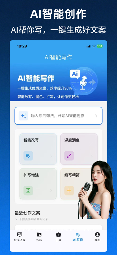 《文字转语音AI配音》:高效的文本转语音工具和配音工具,让您的语音内容更具吸引力! 1、一键合成,简单易用 轻松将文字转语音,完成文字配音,无需繁琐操作。 2、500位专业AI主播 各种音色的男声女声童声,音质媲美真人,满足各种配音需求。 通用男声女声,带货主播,客服主播,方言主播,配音解说主播,多情感主播,外语主播等。 3、多语种支持 支持英语,日语,汉语,德国,法语,马来语,西班牙语,菲律宾语,泰语,意大利语,俄语,韩语,越南语。 满足全球化要求。 4、多方言支持 东北话,粤语,天津话,湖南话,台湾话,四川话,广州普通话等,增强地域特色。 5、丰富的音效库 丰富的背景Bgm音乐库,还可以使用本机音乐文件; 各种音效库,动物声,电子音效,生活音效,片头音效,搞笑音效,转场音效,营造独特氛围。 6、强大超多的工具箱 文字工具帮你读取文档、拍照取字; 音频工具支持剪辑、拼接音频,还能添加背景音乐; 视频工具轻松为视频配音、添加音效。功能强大,操作简单,助你高效搞定文字、音视频处理! 7、声音极速完美克隆 极速克隆,完美复刻,只需10秒即可克隆你的声音,打造专属配音主播。 无论是视频配音、语音助手,还是个性化音频制作,都能轻松实现。让你的声音成为独一无二的标志。 8、AI声音设计 一句话描述,定制专属音色!只需输入文字描述(如“温柔知性的女声”或“低沉磁性的男声”),AI 即刻为你生成理想中的声音。支持多语言切换。无论是角色配音、有声内容,还是创意音频,让你的声音想象即刻成真。 9、适用范围广 广泛用于商城超市,会议广播,新闻资讯,教育培训,社区广播,文稿配音、广告配音等文案模板,快速上手。 立即下载《文字转语音AI配音》,体验便捷、高效的语音合成服务! 我们长期稳定运营,持续上架更多特色主播,持续上新各种文字和音视频工具箱。 我们非常高兴您可以给我们反馈各种问题和功能建议,我们会认真对待您提的每个建议,在我们的App上实现您要求的功能和建议。 联系我们:huayuqixin@126.com