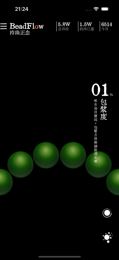 融合东方文玩模拟减压 极具东方审美的持珠把玩APP 仿真包浆:随着盘玩时长,模拟沁润包浆 禅意音景:伴随盘珠,木鱼与磬钟齐鸣,沉浸式环境音,助你深度放松 数据回顾:盘玩数据累积可视化 原名MalaFlow,计划改名为BeadFLow 用户协议:https://docs.qq.com/doc/p/af65426b7e68be2be9727bfdefcedf10c8a7321f?nlc=1 隐私政策:https://docs.qq.com/doc/p/8875d503dca0c42866c10bac1ffdd41cded16614?nlc=1