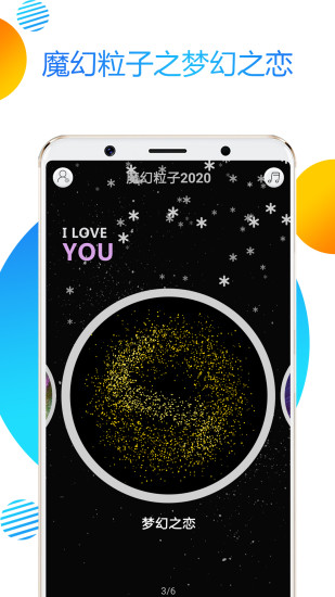 ★★★★★《魔幻粒子2020》将粒子、科学、艺术、音乐融为一体的一款应用。使用了大量的数学知识,物理知识,空间想象力,让你置身梦境中。应用中集成了各种不同的粒子,随着您的手指触摸滑动屏幕,屏幕中的粒子呈现各种梦幻般的效果。 ★★★★★闪电风暴,梦幻之恋,七彩风暴,科学力量,多姿多彩等各种丰富的场景模式可供切换,每种模式可设置粒子的数量、大小、颜色、运行速度等各种自定义设置满足您不同场景的表白需求。应用中还提供了各种浪漫的钢琴曲可作为背景音乐,亦可自定义您与恋人喜欢或者有特殊意义的歌曲作为背景音乐。应用更有截图、录屏功能让您将作品保存到手机或分享给您的恋人、家人、朋友等。