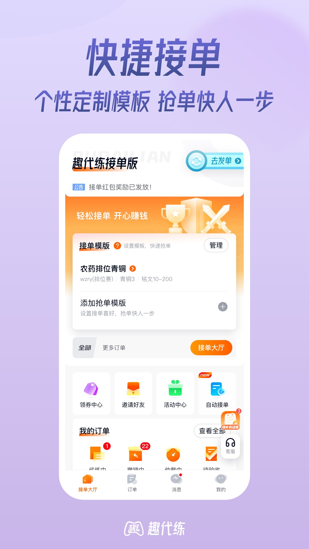 趣代练 隶属于破军科技有限公司旗下 代练行业交易的第三方管理平台 ,平台主要提供解决交易双方在传统代练交易中所碰到的安全因素问题以及提供第三方担保交易服务。随着游戏市场的不断壮大而产生的新型代练行业缺乏规范及机构监管,代练交易过程代练安全性低,代练成本高,代练资源消耗高,代练效率低,代练信任危机严重,代练纠纷得不到妥善处理等问题。为解决以上代练问题,趣代练作为第三方代练交易管理平台提供专业安全便捷的担保式代练交易服务。 我们是年轻的团队,我们是有激情的团队,我们拥抱善良,我们也还有梦想! 我们承诺将秉承“ 客户至上 ”的经营理念,关注好每一个细节,不断完善用户体验,优化安全机制,努力提升服务质量! 服务内容:LOL英雄联盟代练 荣耀代练等热门游戏代练服务。无论您是找人代练上分,还是自己接单打单,统统满足您的任何需求。 趣代练官网:www.qudailianba.com