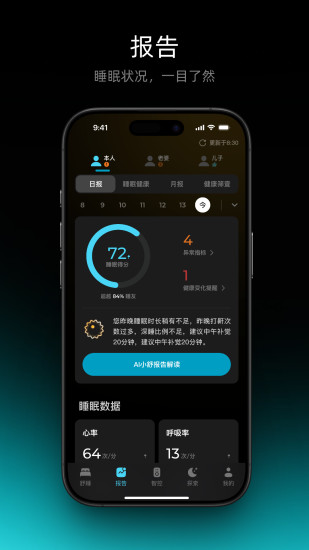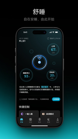 定制健康助眠方案,21天拥有好睡眠 熊猫睡眠,轻松拯救失眠者,培养良好睡眠习惯,监测你的睡眠过程,为你呈现可视化的睡眠报告,帮你更了解你的睡眠。全方位了解自己的睡眠状态!帮您睡得更好睡得更香!更好的睡眠可以帮助你在工作和学习中更有效率,改善你的情绪,让你更快乐。 #适合以下人群# ·有睡眠症状困扰的人(难以入睡,频繁醒来,多梦,失眠)的人 ·想了解自己睡眠质量并改善睡眠质量的人 ·受压力和焦虑困扰的上班族 ·想要专注于工作或学习的人 ·喜欢冥想或想尝试冥想的人 ·睡眠时容易受环境噪声影响的人群 ·考试和课业压力大的学生 ·想要提高睡眠质量的人 ·想要记录自己的梦话和打鼾的人 #特色功能# 【轻松入睡】 ·为您提供海量原创的白噪音、睡眠故事、催眠曲、冥想音乐、asmr、助眠脑波和轻音乐,营造专业舒适入睡氛围 ·告别失眠多梦,告别气短乏力,放松自己,轻松入睡。 【记录梦话鼾声】 ·捕捉你在睡眠过程中的梦话以及鼾声,深层次的分析呼吸状况,记录你的磨牙声和宠物声,感受且分享你的睡眠乐趣。 ·睡得多≠睡得好,高质量的睡眠让你倍感轻松且充满活力,工作效率更高、精神状态更好 【追踪睡眠周期】
