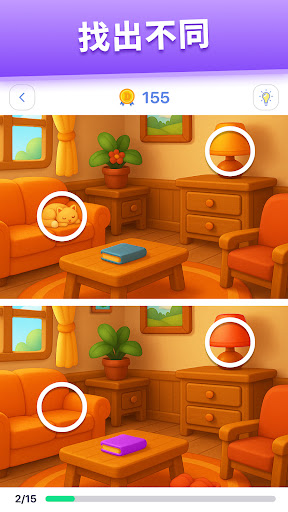 经典找不同游戏,专为逻辑游戏爱好者打造。如果您喜欢寻找物体并享受乐趣,这款游戏绝对适合您。关注每个细节,找出所有 5 个不同点!<br><br>想象一下,您正在看两张相似的图片。但不要被愚弄!它们之间有差异。但您能找到它们吗?找出图片中的 3 到 5 个不同点,开启新的关卡。这是随时随地训练您的大脑和注意力的最佳方式!<br><br>找出不同点并不总是那么容易,有些任务非常具有挑战性。尝试找出所有不同点,开启新的关卡。通过玩这款游戏,您可以检验自己的技能。我们致力于让这款游戏对您有所帮助。我们不断添加新的谜题和任务。这是测试您注意力并训练视觉记忆力的最佳选择。<br><br><b>特色:</b><br>没有时间限制;<br>精美的高清画面;<br>游戏免费,无需网络连接即可畅玩;<br>提供提示。<br><br>有很多不同之处等你来发现。你准备好迎接挑战了吗?快来一起玩吧!祝你游戏愉快!