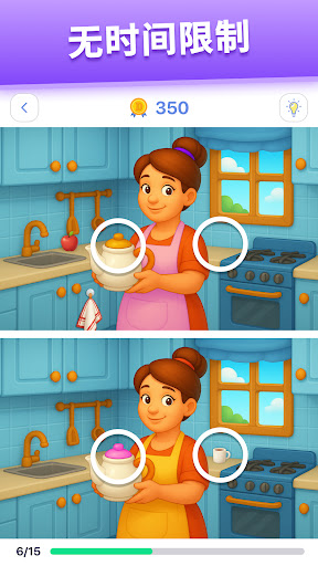 使用全新方法来玩著名的“找不同”游戏——找到的不同之处会立即消失!我们制做了特殊内容:有 75 处不同的重大关卡。你能全都找出来吗?<br>接受挑战,找出两张彩色图片之间的所有差异。该游戏是完全免费的,没有计时器。放松身心,尽情享受游戏。发现我们的难关和简单关卡的差异!<br><br>⭐为什么要玩这个游戏⭐:<br><br>💥<b> 不同数量的差异:15、30、50、75。选择你觉得最适合你的难度。具有 15 个差异的简单关卡还是具有 75 个差异的最棘手关卡?<br>⏰<b>没有时间限制。花点时间享受游戏。<br>💯<b> 许多类别可供选择。让自己沉浸在各种图片的大宇宙中。<br>🔍<b> 缩放。放大图片以使其更清晰。<br>💡<b> 提示。如果您有一些困难,请不要担心。提示总是在这里提供帮助!<br>💫 <b> 一旦发现差异,对象就会消失。<br>💥 <b> 来自我们设计师的独特内容。<br>✨ <b> 定期的季节性活动。<br>⬆️ <b> 每天都有新关卡。没时间无聊!<br>🥇 <b> 你自己的关卡画廊。您已完成或仍在进行中的级别。<br>🏆 <b> 隐藏已完成的关卡选项。<br><br>与您的朋友和家人一起潜入充满差异的世界!该游戏有益于您的心理健康:通过关注细节来减轻压力和焦虑。借助这款益智游戏,锻炼您的大脑,提高短期记忆力、注意力和逻辑能力。大量美丽的关卡等着你。寻找隐藏的物体是在玩逻辑脑筋急转弯时放松的最佳方式。<br><br>那么,如何在玩游戏时更容易发现这些差异呢?<br><br>要找到照片中所有隐藏的差异,您应该非常细心。一种经典的技术是沿两个图像扫描,从左到右来回扫描,然后逐渐向下扫描。这种技术适用于颜色变化和查找已移除的对象。许多差异可能隐藏在角落里,请检查它们!提高你的观察能力!<br><br>我们已经准备了一些关键点,或者那些想要更快发现差异的关键点。找不同游戏提示:<br><br>1. 颜色变化 - 两个图像中的对象是相同的,除了颜色的细微变化。<br><br>2. 物体被移除——一些物体或物品被简单地移除。这些比颜色变化更难发现。<br><br>3. 对象和物品进行了调整,所以它们有点不同。这些差异是最难发现的。<br><br>具有隐藏差异的惊人图片游戏正等着您。差异狩猎开放!<br>发现隐藏的差异,寻找隐藏的对象,成为真正的侦探!<br><br>加入我们奇妙的差异世界之旅吧!欢迎加入我们的大家庭!</b></b></b></b></b></b></b></b></b></b></b>