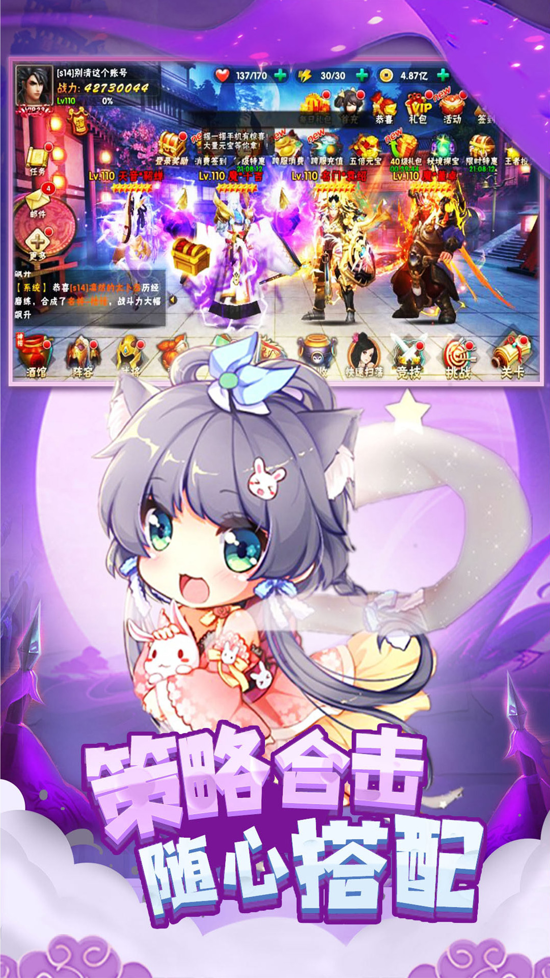 【新人必领福利】<br>SS级武将兑换码:SVIP888<br>价值128新人礼包:vip666<br>价值648新人礼包:vip888<br><br>手指间号令天下英雄,谈笑间横扫中原大陆! 紧张刺激的即时战斗,在纷争的战场上赢得胜利。 --变化多端的武将组合,在瞬息万变的战况中逆转局势。 --激烈壮阔的诸侯大战,豪迈的三国武将们在战场中奋力拼杀。 --精致华丽的游戏画面,酷炫的武将技能,美妙的游戏音乐,如果您喜欢玩三国游戏,那这正是您真正的不二选择!<br><br><br>游戏特色<br><br>【精美画面,视觉盛宴】<br>Q版帅气的英雄外形和技能特效,颠覆以往的威武形象,带给玩家不一样的视觉感官;<br> <br>【跨服交流,共同竞技】<br>多人跨服竞技,好友开黑打副本,社交娱乐两不误;<br> <br>【全新副本,玩法升级】<br>多种竞技、养成等玩法等你解锁,惊险副本奇遇频出,诸多玩法不会腻;<br> <br>【真放置,佛系也能爽】<br>自动推图,离线挂机享高额收益;