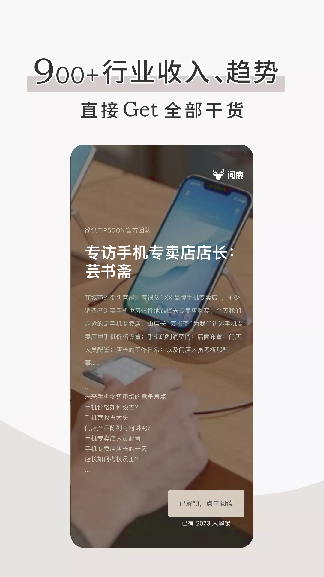 简讯「TIPSOON」是一款主张利用极短的碎片时间涉猎全行业领域的浅阅读产品。无分类+随机阅读的模式是简讯的核心体验,可以让阅读者跳出已经习惯关注的领域,接触到兴趣以外有用的知识以及有趣的内容,从而突破认知瓶颈。 产品于2019-2021年荣获金米奖、极光奖等多项大奖。 简讯的内容源自网络,由用户手动收集整理,囊括优质的百科知识、书报杂志、精华解读、沉淀干货,以及各类人文历史、天文地理、科技人文等材料。 没有分类的设定,是简讯一个特点。分类就是思想的枷锁,如果有了分类,我们都会不由自主地去寻找感兴趣的分类,虽然能讨好用户,但这样往往会让大家错过其他有趣的内容。想要见多识广,就不能局限在自己的兴趣以内。正如王尔德说的:得到了自己想要的其实是一件不幸的事。 到了啤酒馆后,除了百威嘉士伯和1664以外,是否就不知道该点什么酒了?简讯不是那种一拿出来就能告诉你该点什么酒的App,而是在于平时没有思维界限的阅读方式,每一篇都很短,随机到哪条就是哪条,很快地读完,然后很快地翻到下一篇。在有限的时间内可以读到更多的精华、结论、金句等等内容,从而自然地由量变引起质变,逐步打开眼界。