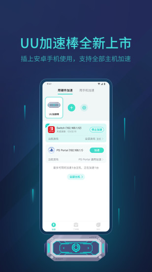 网易UU主机加速App是一款专业解决用户主机设备(PS系列, Switch系列, Xbox系列, Steam Deck, Meta Quest系列, Windows掌机)加速的产品。 UU加速棒现已火热上市!全新形态的加速方式,即插即用,随身加速,欢迎前往官网或电商平台了解选购! 我们提供了五种不同类型的加速方式: 如果你购买了UU加速棒,只需将UU加速棒插入有网络的手机,即可随时随地对主机进行加速,更快更稳定。 如果你购买UU加速盒,只需要连接盒子Wi-Fi,无需再次安装插件,完成绑定后即可进行加速! 在Steam Deck上,只需三步即可安装UU插件,摆脱硬件束缚,随时随地进行Steam Deck联机。 在户外或者是商场,你可以使用手机加速Switch功能,利用手机热点或者是Wi-Fi,让你畅享Switch游戏的联机加速。 用手机连接对应路由器的Wi-Fi后,即可安装路由器插件,解决主机游戏过程中遇到的各类网络问题,达到稳定的主机游戏加速效果。 告别NAT类型限制! 告别复杂的网络配置! 告别令人头疼的路由器插件安装! UU主机加速App,你的主机联机大师!快来试试吧!