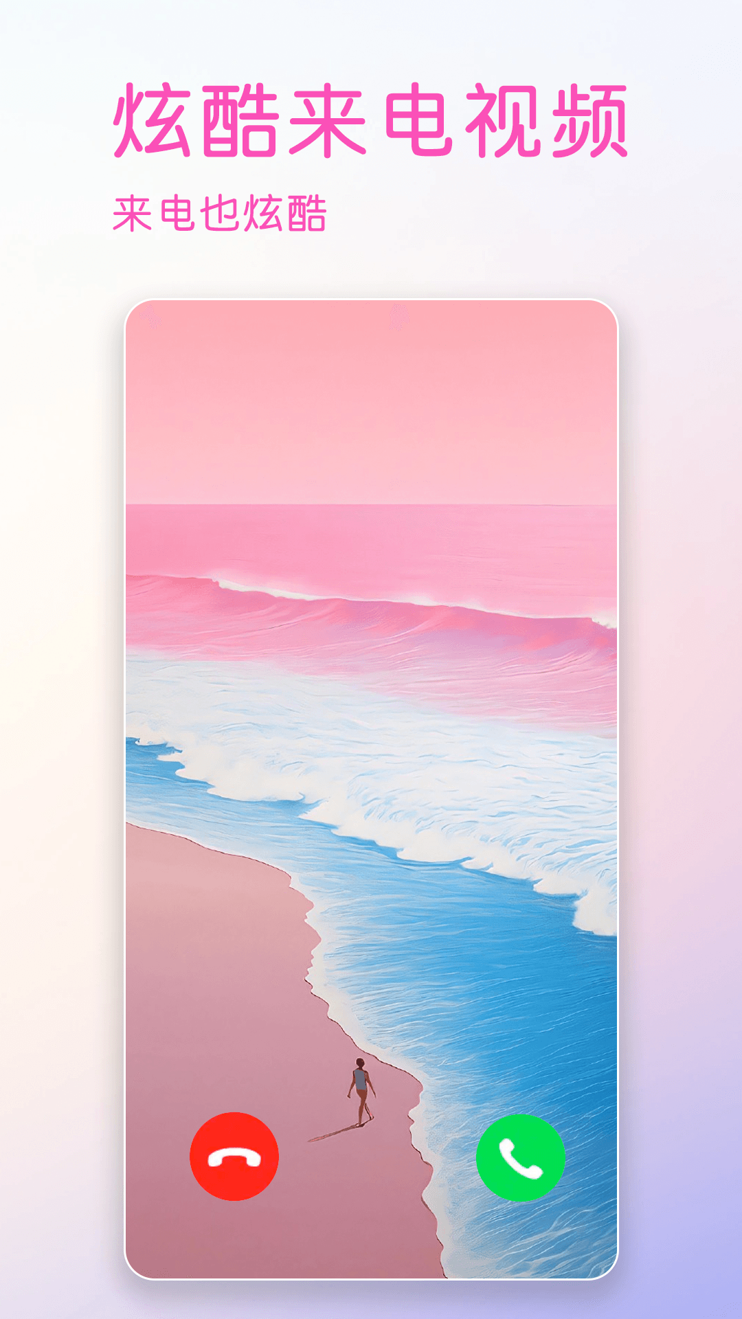 一款具有多样的来电视频和铃声秀的软件,告别单调乏味的系统来电提示音。热门、最新、小姐姐、炫酷、电音、萌宠、音乐、明星、影视、小哥哥、搞笑、情侣、动漫、游戏,音乐,风景等,总有一款满足独特的你。手机彩铃铃声不仅是属于你的手机来电美容师,还是带给你美好心情的乐园。 【精美来电视频】 百万来电视频秀、高清图片、魔幻手机桌面主题等精彩内容实时更新。接电话时候,可以呈现与他人不同的来电界面跟来电铃声,给你带来与众不同的来电享受。种类多多,每日更新,总有一款是你的菜,既拉风又酷炫,让你的手机大屏时尚时尚更时尚。 【百万铃声】 线下火热铃声推荐,抖音铃声、来电铃声、闹钟铃声、通知短信铃声,应有尽有,精细铃声分类,热门、最新、嗨爆DJ、整人恶搞、影视热曲、清新可爱、网络热歌等,曲库超全,铃声多多,轻松一键设置,为特别的人订制专属特别的铃声。从此每天期盼着来电话的感觉,让枯燥无味的来电变得独特起来。