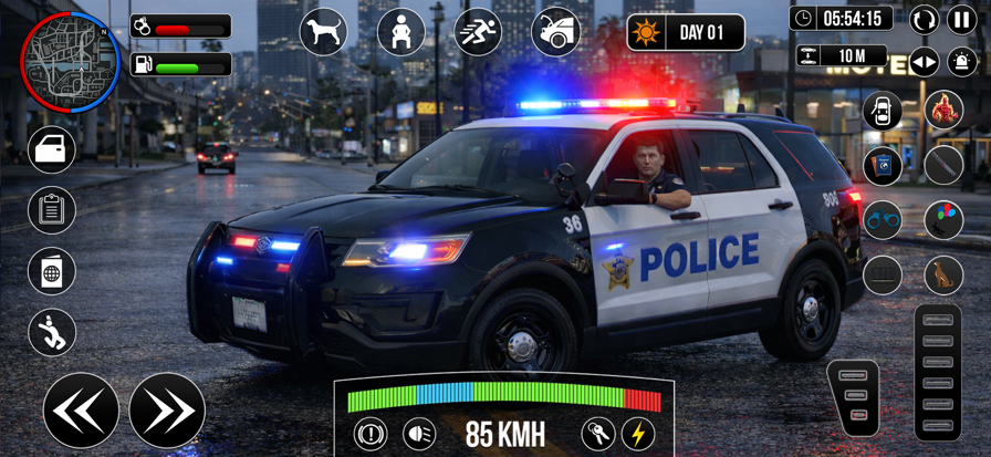 The Police Real Chase Car Simulator is the best simulation game that provides the greatest open-world realistic gaming and automobile driving experience. Although completing missions is difficult, you may join the fun and frequently practice driving and perform various stunts. It is critical to figure out how to move in normal traffic while doing missions to become an expert in this game. As you go, you will complete the amazing mission and drive your police car across various sorts of routes between the buildings. Show off your amazing car driving skills, perform awesome car stunts in one of the best free car driving simulators games! As I previously stated, this is an open-world game in which you may drive a car and walk as a police officer. You can do stunts, Chase and arrest bad drivers, racing missions, Arrest bank's robbers, and a variety of other types of tasks. You will be promoted to the next level after finishing each mission and earn points to unlock new police cars. While driving a police car, you also have a NOS button on the screen, which gives your car a speed boost while chasing thieves in missions, making the game full of fun and joy. Later in the game, you may play in several settings, including third-person view perspective and Real HD graphics, in the never-ending police vehicle game. The smooth arcade riding experience is still present. Ride your police vehicle over the endless highways, off-road areas, upgrade and acquire new police cars to finish the difficult missions, and gain points by riding through rush hour traffic. You may also update your police car and buy new ones that suit your preferences. Features • Adjustable Stunning realistic graphics • An open-world game where you move freely • A lot of missions and stunts • Dynamic traffic with real and intense traffic AI • Super police cars • Realistic car physics • Easy to play driving controls, use touch, wheel, and tilt controls!