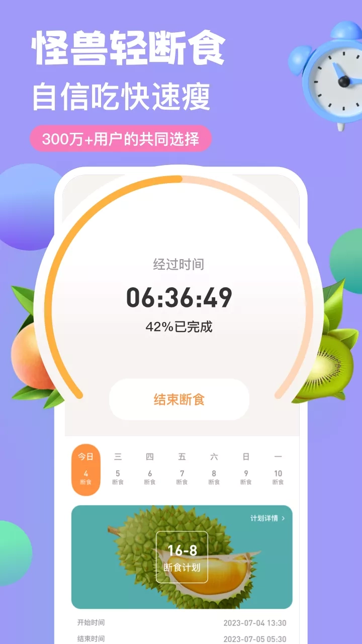 【怪兽轻断食为何神器?】怪兽轻断食作为一款个性定制化的免费断食记录神器;小白自带引导,大神量身定制,为您的每个阶段带来科学、健康、专业的断食指导,让您更安全、高效、快速的减轻体重,快来加入我们,一起瘦瘦瘦吧! 【轻断食可减肥吗?】通过自定义断食计划,提醒您断食与干饭时间节点划分,同时附上您身体不同阶段的状态提醒,助您更深入理解身体状态,即可提高头脑清晰度,缓解内心不安的状态;拥有轻断食app,再也不用担心入口食物超热量,节食反弹,运动难以坚持的问题,吃遍美食也能轻松瘦身~ 【轻断食核心功能?】- 量身打造断食计划; - 全面断食追踪器; - 断食周报详情分析;- 追踪减重和断食状态; -科学食谱专属定制; - 跟踪断食历史和图表记录;- 配合锻炼版块组合拳,助力更快瘦身。 【温馨提示】如您有任何问题或建议,请通过以下联系方式,随时联系我们: 客服瘦瘦官微:gsqds2022,邮箱:wanlijun@aiotoolbox.com;