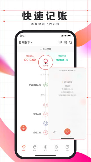 小兜记账,为您带来轻松、智能、高效的财务管理体验!无论是双手忙碌还是不便打字,只需简单口述账目,小兜的Ai技术就能迅速识别并精准自动记录相关信息。从此告别繁琐的手工记账与复杂的财务分析,尽享高效与便捷。可以同时满足日常生活记账、家庭记账、生意记账、宠物记账、装修记账、多账本记账等。 产品特色: 【Ai语音记账】 运用先进的智能语音技术,无论语音还是文字输入,都能快速自动识别并准确分类消费记录。一次可发送多笔账目,Ai智能归类,还能随心指定记账日期,精准无误。 【自动记账】 收付款后自动识别账单,一键自动记账,省时省力。 【定时记账】 提前设置好常见的记账项目,如每月固定的房租、水电费、电话费等,以及周期性的工资、奖金等收入。可按照天、周、月、年等不同的时间周期进行定时记账设置。系统会在预设时间自动按照设定的模板和金额自动记账,无需用户手动操作,减少遗忘和漏记的情况。 【统计分析】 全面支持收入、支出、结余的统计。依据不同收支类别对数据分类汇总,精准计算各类别的总金额与占比。提供丰富多样、深入详尽的数据可视化图表,直观呈现各类别占总收支的比例以及每月收支变化趋势。支持按天、周、月、季、年等多种时间维度进行统计,助您清晰掌握财务状况。 【资产管理】 全方位跟踪管理个人资产,轻松添加现金、银行存款、信用卡、股票、基金等多种资产账户。清晰掌控资产分布和增长趋势,全面了解您的财务状况,为您的财务决策提供明智依据。 【预算管理】 拥有强大的预算管理功能,可针对各种消费类别设置预算限额。实时监控消费动态,及时提醒超支风险,有效控制开支,实现理想理财。 【债务管理】 便捷添加借款详情,涵盖借款金额、日期、对象、用途等。清晰区分借入和借出款项,分别进行详细记录。精准统计借款情况,如借款总额、待还总额、已还总额等。 【账单导入导出】 支持微信账单、支付宝账单以及其他记账APP平台账单的导入与自动归类,同时也支持将账单导出为Excel格式,方便您进行二次编辑和打印保存。 【多人共享记账】 可将任意一个账本设置为共享记账,邀请家人或好友一起记账。适用于家庭记账、情侣记账、生意记账、旅游AA记账等场景。 选择小兜记账,让财务管理变得轻松有序,助您实现财务自由!
