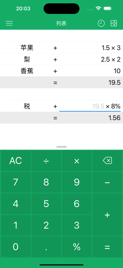 用标准计算器输入数据的时候,是否曾经忘记上一步输入是否正确?是否曾经记不起是否少输入一步?是的,我们需要一个记录我们输入步骤的生活计算器。 虽然这款计算器只有基本的加减乘除运算,但能满足我们大部分人的日常需要,比如核对帐目,累加计数,计算购物列表,数字乘除累加等。 这款计算器最大的优点是能够记录每一步的操作,并且可以选择以前的操作进行修改,重新计算,并不用重新再输入一遍。 以竹子命名这款计算器,是希望这款计算器像竹子一样,每一节的记录都能够保存下来. 功能和优点: - 操作简单,迅速,准确 - 查看每一步的操作,放心 - 随意修改每一步,重新计算结果,方便 - 在任意步骤加上注释,方便查阅,核对 - 查看最近的历史记录,并且在历史纪录的基础上再编辑 - 电子邮件邮寄你的计算清单 - 打印你的计算清单 - 根据个人的习惯设置不同的布局,颜色 - 根据自己的需求自定义计算器 包含的计算器: - 公式计算器 - 列表计算器 - 单位换算器 - 贷款计算器 - 小费计算器 - 数学计算器 - 数制计算器 - 自定义计算器