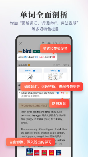收录《新牛津英汉双解大词典》第2版、《牛津高阶英汉双解词典》第9版、《牛津英汉汉英词典》、《牛津中阶》第5版/《牛津初阶》第4版,集合五本畅销牛津英汉词典,更有海词AI强势加入,黏贴或输入英文内容,即可实现:点击查词、翻译、智能分词等,助你实现无障碍学习! ※内容特色 ※ 【重磅引入:《牛津英汉汉英词典》】 《牛津英汉汉英词典》 共收录单词、短语及翻译670000余条,覆盖面广、查得率高,适合学习、写作、翻译者使用。 【英汉双解/英英/英汉切换】 根据你的学习喜好,可一键切换,秒变英英词典、英汉词典。 【教学查考一体化】 提供读音、词形变化等信息,并设置“用法说明”、“词汇动态”专栏,实现小型语言教学词典与大型语言查考词典的全新结合。 ※ 功能特色 ※ 【单词巧记】 海词AI通过自然语言分析,智能生成音节组件、拼读记忆、联想记忆等单词巧记内容,手把手教你拼读单词、记住单词发音,更有词根词缀联想记忆助你举一反三,快速扩充词汇量。 【全局点击查词】 学习时遇到不懂的词汇,无需退出当前界面,点击不懂的英语单词即可查询。