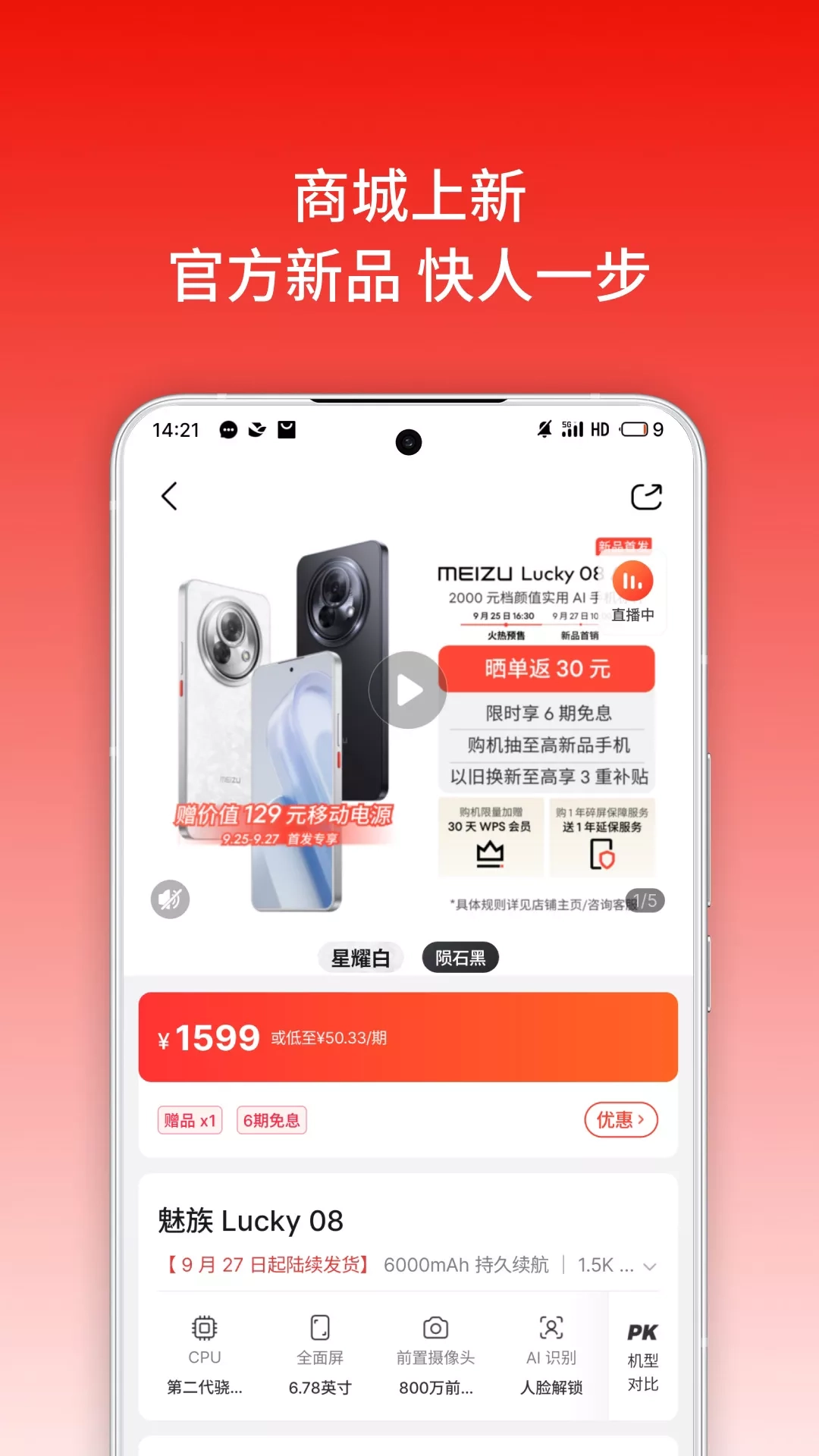 【买手机,就上魅族商城】 在魅族商城,您可以第一时间购买魅族官方新品,新品快人一步。魅族手机、魅族配件、渴物众筹奇趣新品、Lipro健康照明等产品一站式购齐,享受官方平台提供的正品保障和品质服务。 【享优质服务】 全国联保,官方品质保证 7天无理由退货,15天换货保障,1年免费保修 百城速达 满80元免运费 一站式以旧换新 【新鲜活动超值购】 新人有礼:新人专享大礼包,来就送 用户特惠:学生用户、老用户专享购机、配件优惠 限时购:天天享超值好价 煤球好玩能抵钱:煤球抽大奖、每周四煤球兑换、煤球购物抵现 魅族商城专属节:新、老、学生用户周专享优惠,配件宠粉日:每月1日惊喜上线